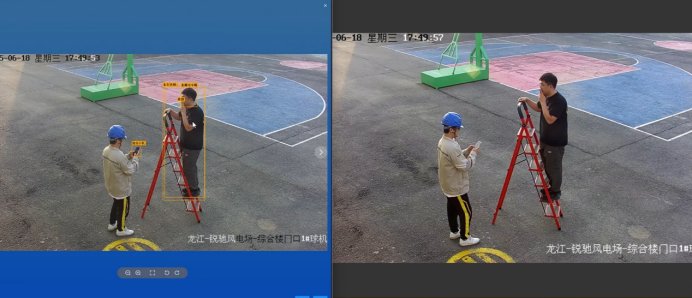 風電場利用智能感知終端,實時監測現場人員行為及作業過程、智能分析設備是否可能存在安全生產問題,當檢測到違規作業風險行為和設備安全隱患時,系統會立即觸發聲光告警,并同步推送至遠程監控中心。同時配合智能門禁、電子圍欄實現入侵檢測和周界防范,形成"人防+技防+智防"的立體防線。