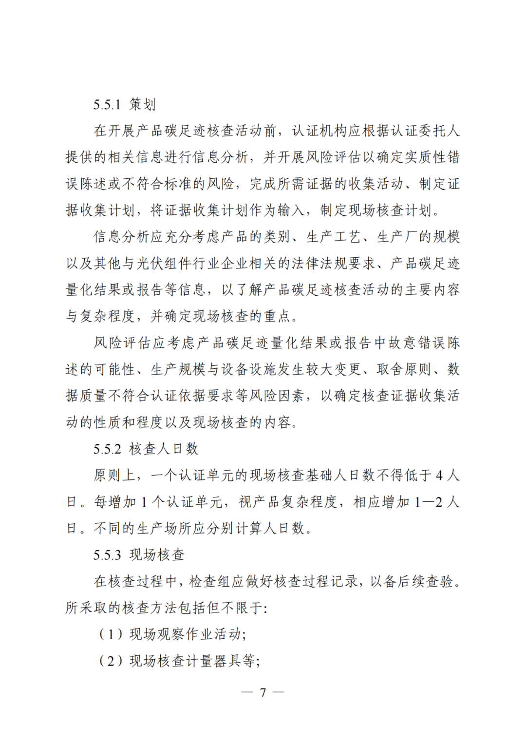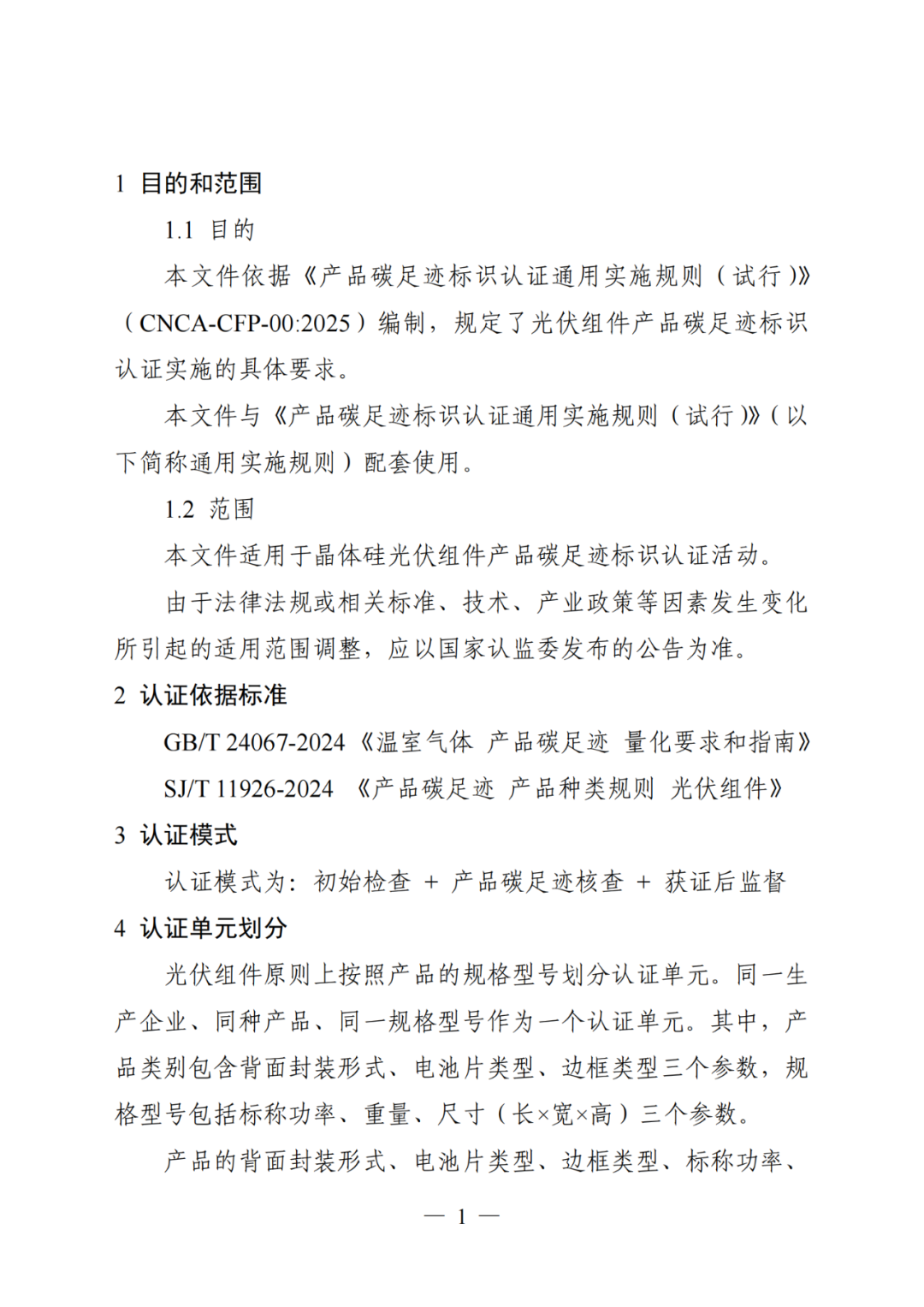 文件表示,本文件適用于晶體硅光伏組件產品碳足跡標識認證活動;認證模式為:初始檢查+產品碳足跡核查+獲證后監督。
