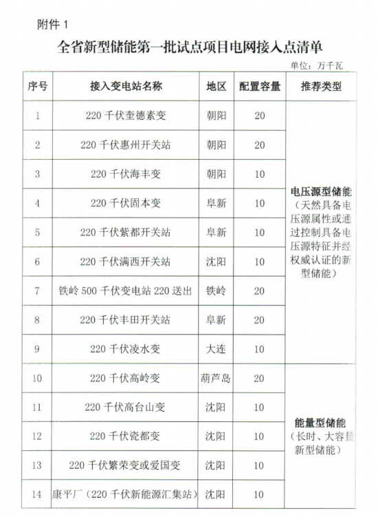近日,遼寧省發改委發布《省發展改革委關于開展新型儲能第一批試點示范工作的通知》(以下簡稱《通知》)。《通知》確定接入全省24個變電站儲能項目總容量3.2GW,單體項目規模要求不低于100MW。