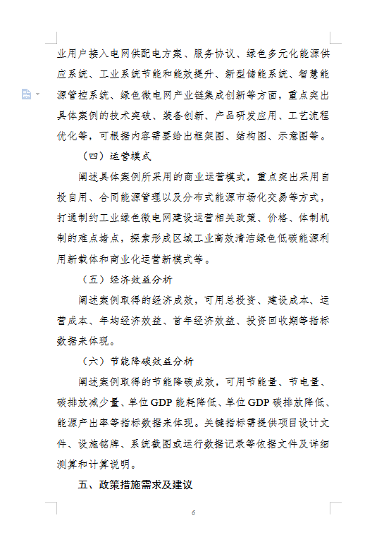 (二)具體要求。申報的工業綠色微電網應實現穩定運行、具有顯著節能降碳效果,并至少滿足下列指標中的三項要求: