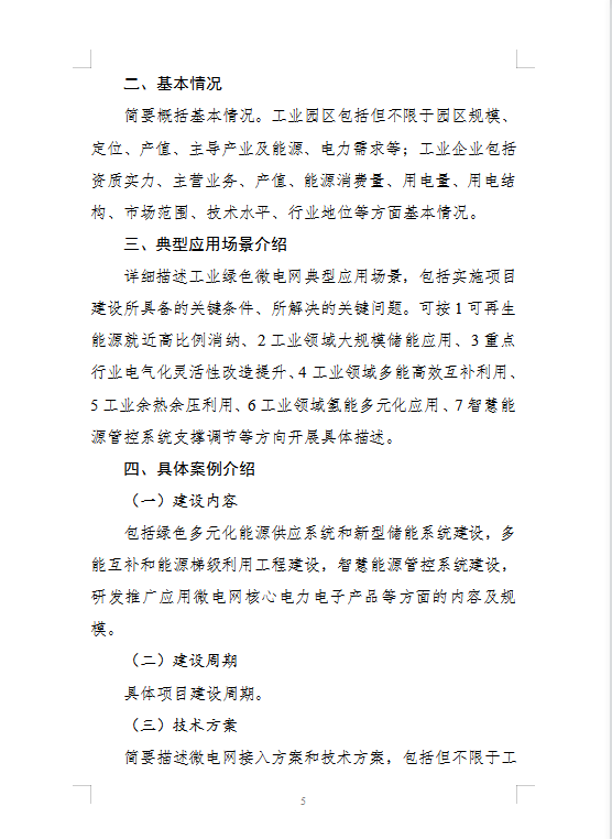 聚焦鋼鐵、有色、石化、化工、建材、機械、輕工、紡織、電子以及數據中心、5G基站等重點行業領域,征集一批集成應用分布式光伏、分散式風電、高效熱泵、新型儲能、氫能、余熱余壓利用、智慧能源管控等一體化系統的工業綠色微電網。