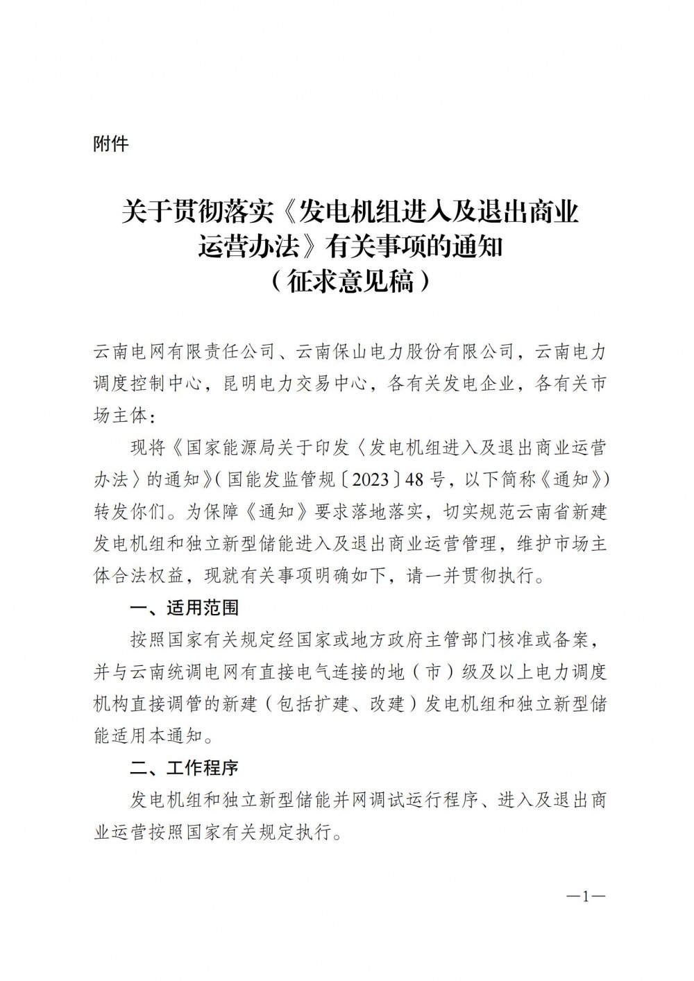 附件:關于貫徹落實《發電機組進入及退出商業運營辦法》有關事項的通知(征求意見稿).pdf