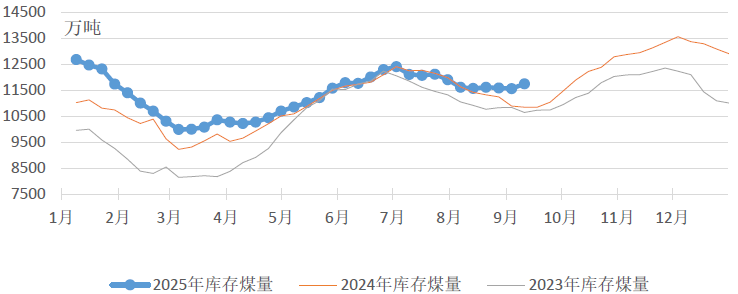 根據中電聯電力行業燃料統計,截至9月11日,納入統計的發電集團燃煤電廠本月累計發電量同比下降14.8%,本年累計發電量同比下降4.1%。燃煤電廠耗煤量本月累計同比下降15%,本年累計同比下降4.7%。燃煤電廠煤炭庫存高于去年同期902萬噸,庫存可用天數高于上年同期3.5天。