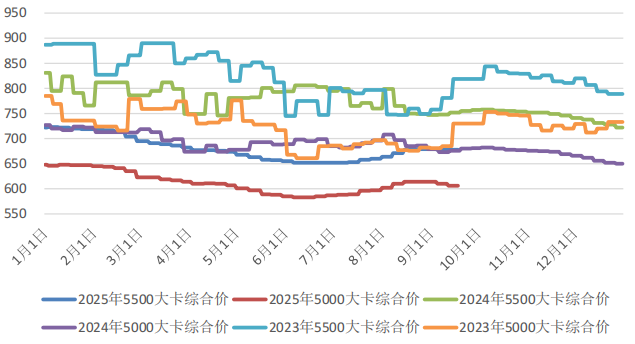 本周,多地降溫明顯,火電整體日耗小幅減少;部分電力企業冬儲及節前補庫需求少量釋放,非電行業需求穩定,但終端整體需求仍呈季節性走弱格局。主產地產銷正常,各礦普遍無庫存壓力。坑口價格延續上漲態勢;港口價格止跌反彈,且漲幅較大。后期,天氣降溫將進一步拉低民用電需求,且水電出力情況預計較好,加之終端庫存高位運行,電煤需求仍處于季節性低位;但“雙節”假期前或將釋放一定補庫需求,加之非電需求相對穩定,尤其是價格連漲后投機貿易增多,市場整體需求預計不會出現明顯減少。環保、產能核查等政策將對供給側起到一定制約,加之下旬起完成月度任務的煤礦將陸續減產、停產,供給側存在收縮預期,市場將延續供需雙弱格局。發運成本支撐及優質煤源偏緊影響下,貿易商挺價意愿普遍較強,大型煤企外購價格于本周末再次補漲,將促使市場情緒進一步升溫。綜合判斷,近期部分因素雖對價格起到一定利好作用,但供需關系并未出現實質性改變,淡季價格持續上漲說明當前市場情緒對價格走勢的影響力不斷加強,預計近期市場煤價格將延續偏強走勢。建議繼續做好中長期合同履約,保持適量剛需現貨采購,保持庫存平穩、結構合理,保障電力供應安全與經濟效益平衡;同時,降雨天氣下注意做好燃煤接卸及廠內管理工作。