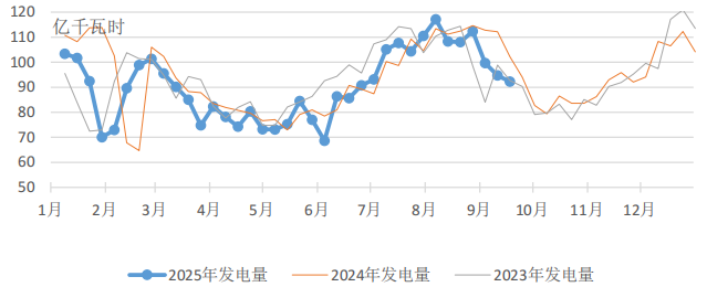 根據中電聯電力行業燃料統計,截至9月18日,納入統計的發電集團燃煤電廠本月累計發電量同比下降12.9%,本年累計發電量同比下降4.2%。燃煤電廠耗煤量本月累計同比下降13.4%,本年累計同比下降4.9%。燃煤電廠煤炭庫存高于去年同期986萬噸,庫存可用天數高于上年同期3.9天。