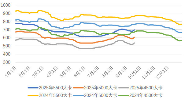 國內煤炭主產地方面,主產地市場呈現“供需雙增,價格穩中偏強”的特征。除陜西、內蒙古部分煤礦因安監核查或檢修短暫停產外,主產地供應整體穩定。“雙節”假期及大秦線秋檢臨近,疊加北方冬儲煤工作陸續展開,電煤采購需求小幅釋放,同時化工等非電行業需求向好。大型煤企連續上調外購價格,市場活躍度迅速回暖,坑口價格普遍上調。