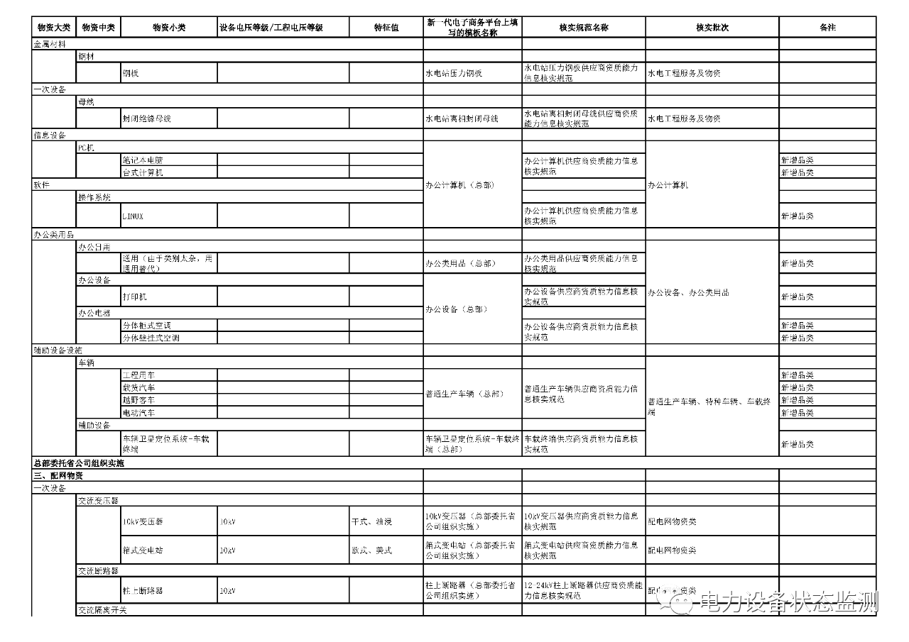 核實范圍主要包括10千伏及以上輸變電設備、材料,通信設備,數字化設備,通信設備,營銷類物資,輔助類物資,儀器儀表,五金材料,金屬材料,工器具,輸變電工程設計、施工、監(jiān)理,水電工程服務,水電設備等,具體核實范圍詳見附件1。