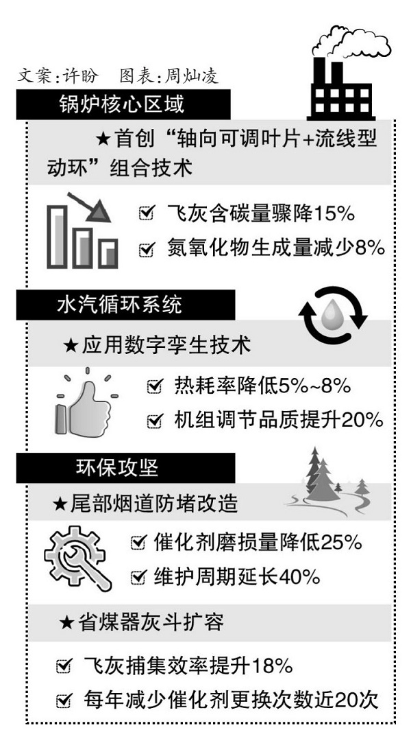在環保攻堅戰中,項目團隊打出一套組合拳。尾部煙道防堵改造采用“耐磨涂層﹢模塊化布置”,輔以煙道整流格柵優化氣流,使催化劑磨損量降低25%,維護周期延長40%。省煤器灰斗擴容后,飛灰捕集效率提升18%,每年減少催化劑更換次數近20次。這些看似枯燥的數據,換算成環保效益卻很驚人:單臺機組年減排煙塵120噸、二氧化硫80噸、氮氧化物150噸,相當于種植了8000畝森林。