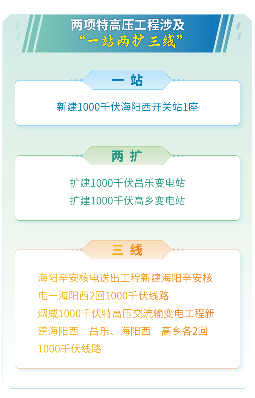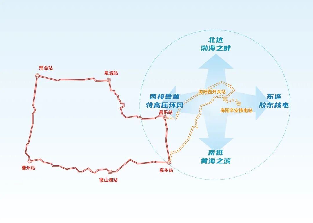 煙威1000千伏特高壓交流輸變電工程和海陽辛安核電1000千伏送出工程“牽手”,北達(dá)渤海之畔,南抵黃海之濱,西接魯冀特高壓環(huán)網(wǎng),東連膠東核電與海上風(fēng)光基地,可實(shí)現(xiàn)遠(yuǎn)距離、大容量、低損耗的可靠電力輸送。