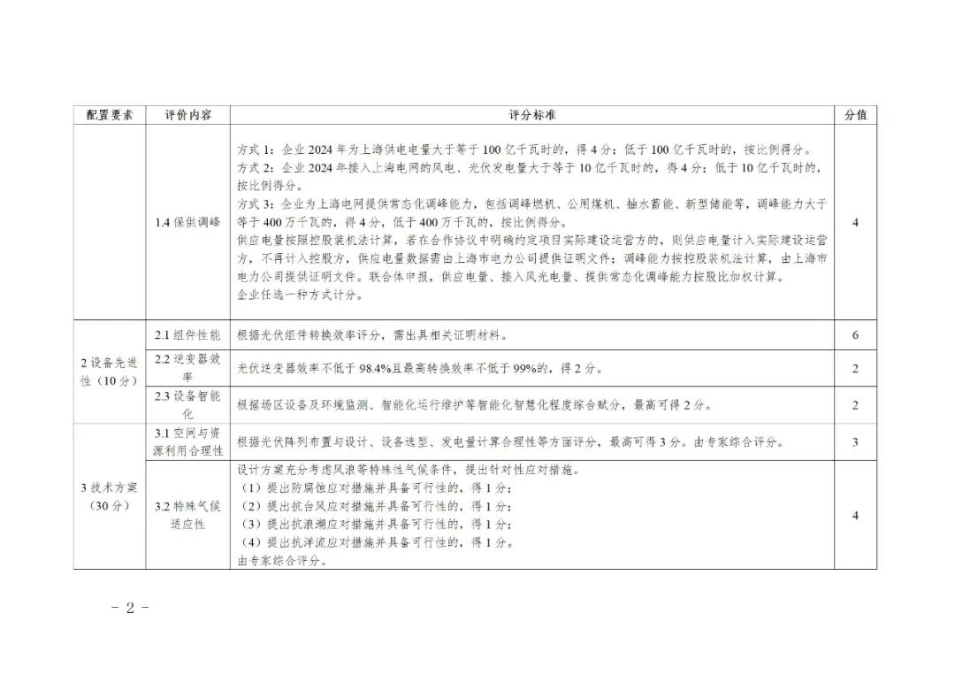 從項目競爭配置評分來看,上網電價占比40分、技術方案30分、企業能力20分、設備先進性10分,具體見下: