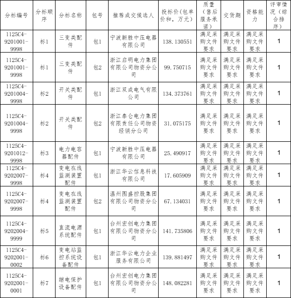 國網浙江電力2025年第一次電網零星物資框架協議競爭性談判采購推薦的成交候選人名單公示(采購編號:ZBGW25-022)