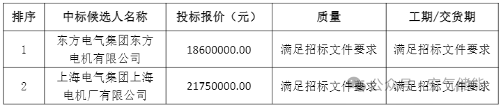 本銅川市耀州區 350MW1400MWh壓縮空氣儲能電站項目空氣壓縮機配套電機及附屬設備(招標項目編號:DZSW-HW-04-DZSWCGZB-2025-001),經評標委員會評審,確定標段(包)001、標段(包)002 的中標候選人,現公示如下: