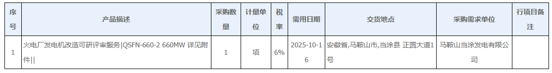 二、采購單名稱:安徽公司當涂公司二期2×1000MW燃煤機組擴建工程項目初可研報告評審服務項目詢比采購