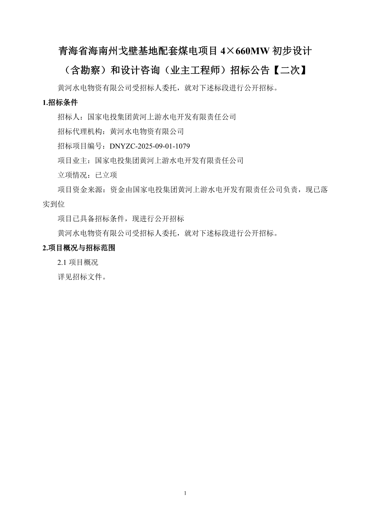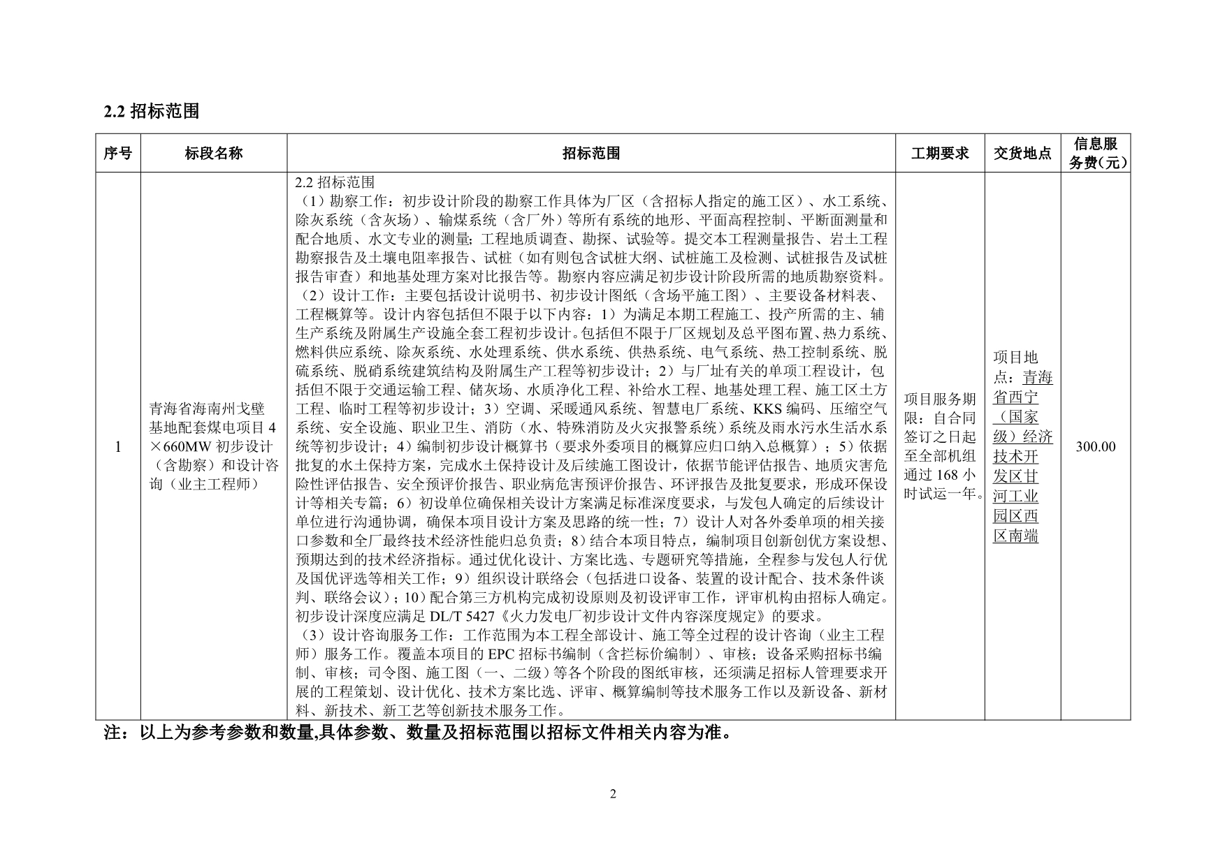 青海省海南州戈壁基地配套煤電項目 4×660MW初步設(shè)計(含勘察)和設(shè)計咨詢(業(yè)主工程師)招標(biāo)公告【二次】