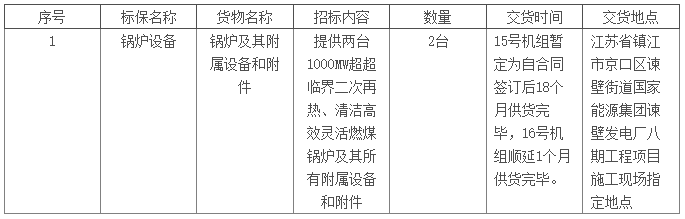 國家能源集團2025年8月電站鍋爐及附屬設備(江蘇諫壁八期2×1000MW)公開招標項目招標公告
