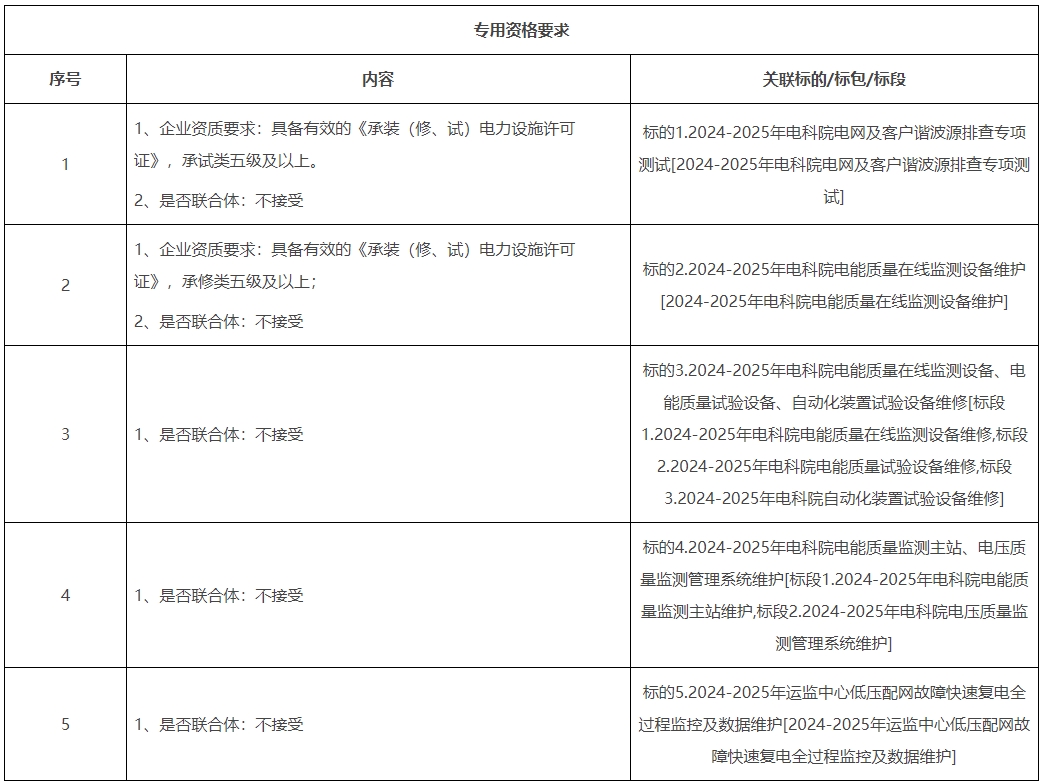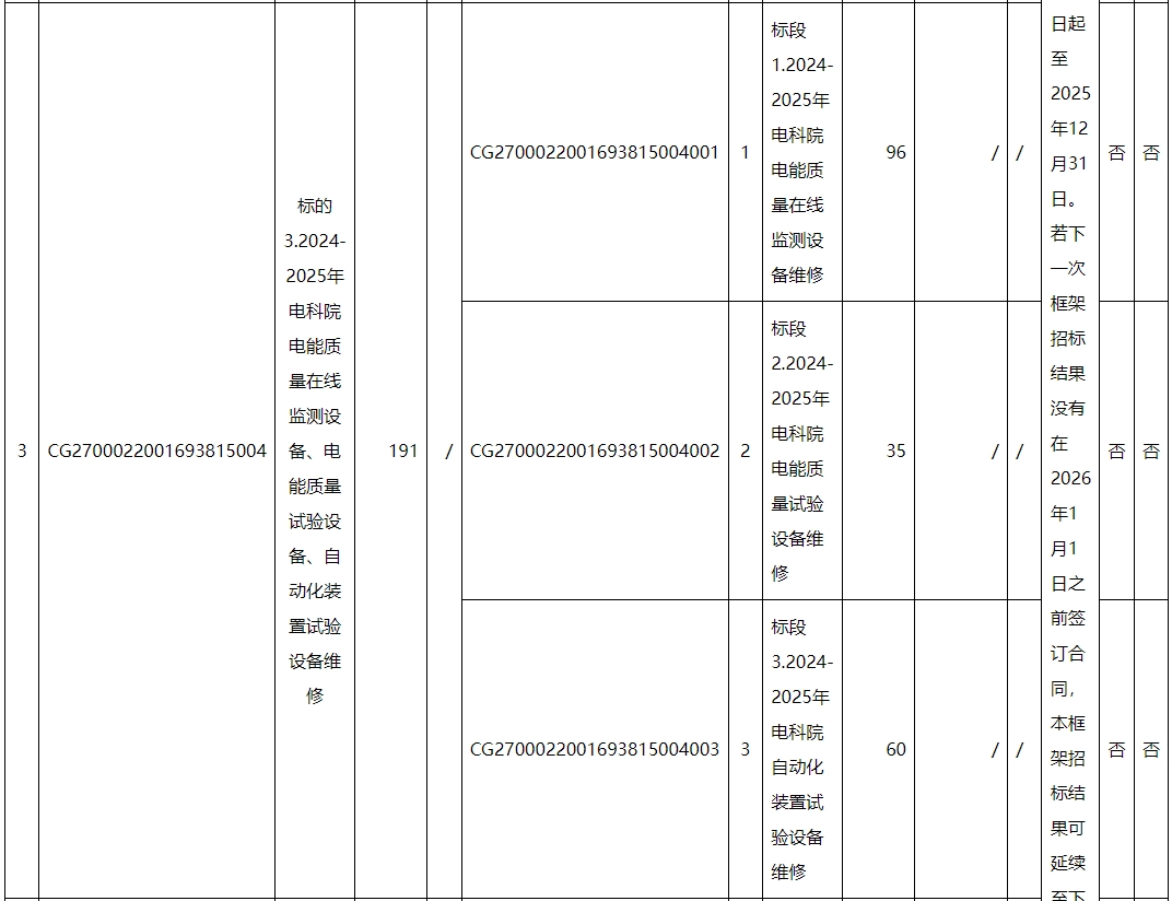 標的3.2024-2025年電科院電能質量在線監測設備、電能質量試驗設備、自動化裝置試驗設備維修:包括(1)2024-2025年電科院電能質量在線監測設備維修:對變電站運行中的電能質量在線監測裝置的故障部件或模塊進行維修,恢復其正常使用功能。(2) 2024-2025年電科院電能質量試驗設備維修:對電科院電能質量試驗設備、電能質量實驗室儀器設備等進行故障維修、恢復其原有功能。(3) 2024-2025年電科院自動化裝置試驗設備維修:對配電自動化檢測實驗室試驗設備和儀器進行維修,對微機繼電保護測試儀、絕緣電阻測試儀、功率源、電池檢測平臺、動模平臺、RTDS檢測平臺等設備進行維修,消缺設備缺陷,恢復設備正常功能,確保實驗室功能正常。