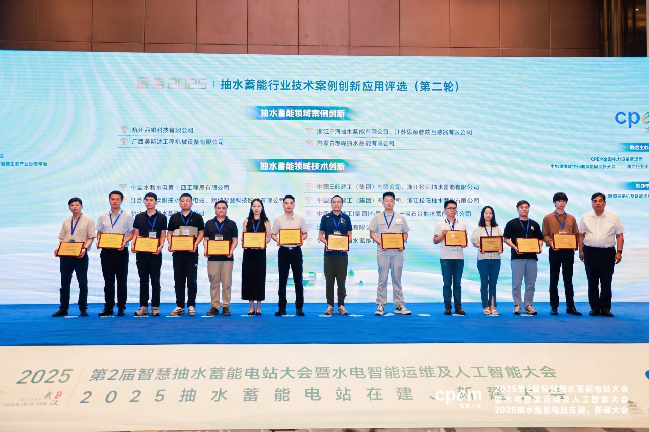 2025年7月24日,由CPEM全國電力設備管理網、中國電力技術市場協會、電力行業水電技術協作網、人工智能生態產業協作平臺等單位聯合主辦的“2025第2屆智慧抽水蓄能電站大會暨水電智能運維及人工智能大會“、”2025抽水蓄能電站在建、新建大會”在湖北省武漢市成功召開。