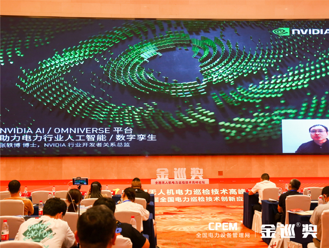NVIDIA 開發者發展總監張軼博國網福建省電力有限公司電力科學研究院設備中心四級職員陳伯建分別作《NVIDIA AI / Omniverse平臺助力電力行業人工智能 / 數字孿生》與《無人機自主巡檢規模化應用保障措施》。