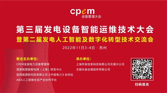 “第三屆發(fā)電設備智能運維技術大會暨第二屆發(fā)電人工智能及數(shù)字化轉型技術交流會”將于2022年11月3-4日在江蘇蘇州舉辦。大會由CPEM全國電力設備管理網(wǎng)、國家能源智能電網(wǎng)(上海)研發(fā)中心、國網(wǎng)能源研究院有限公司《中國電力》雜志社、AIEA人工智能生態(tài)產(chǎn)業(yè)協(xié)作平臺等單位聯(lián)合主辦,上海共燊信息科技有限公司無錫分公司、無錫共燊會展服務有限公司承辦。