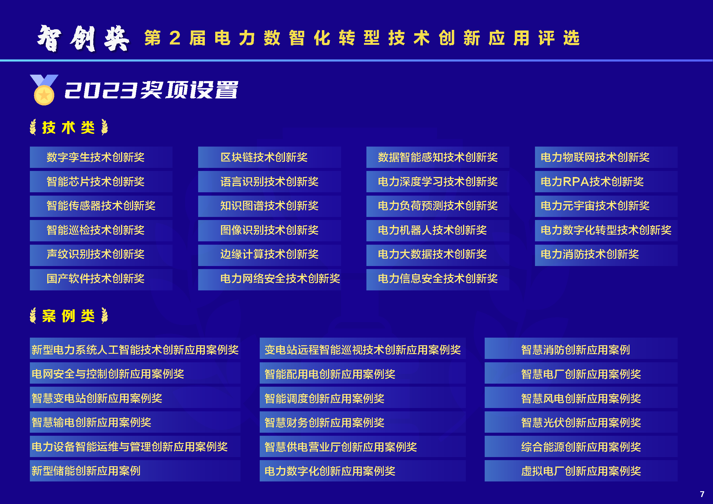 ?「智創獎」全稱“ 電力數智化轉型技術創新應用評選”(原“電力人工智能技術創新應用評選”)。