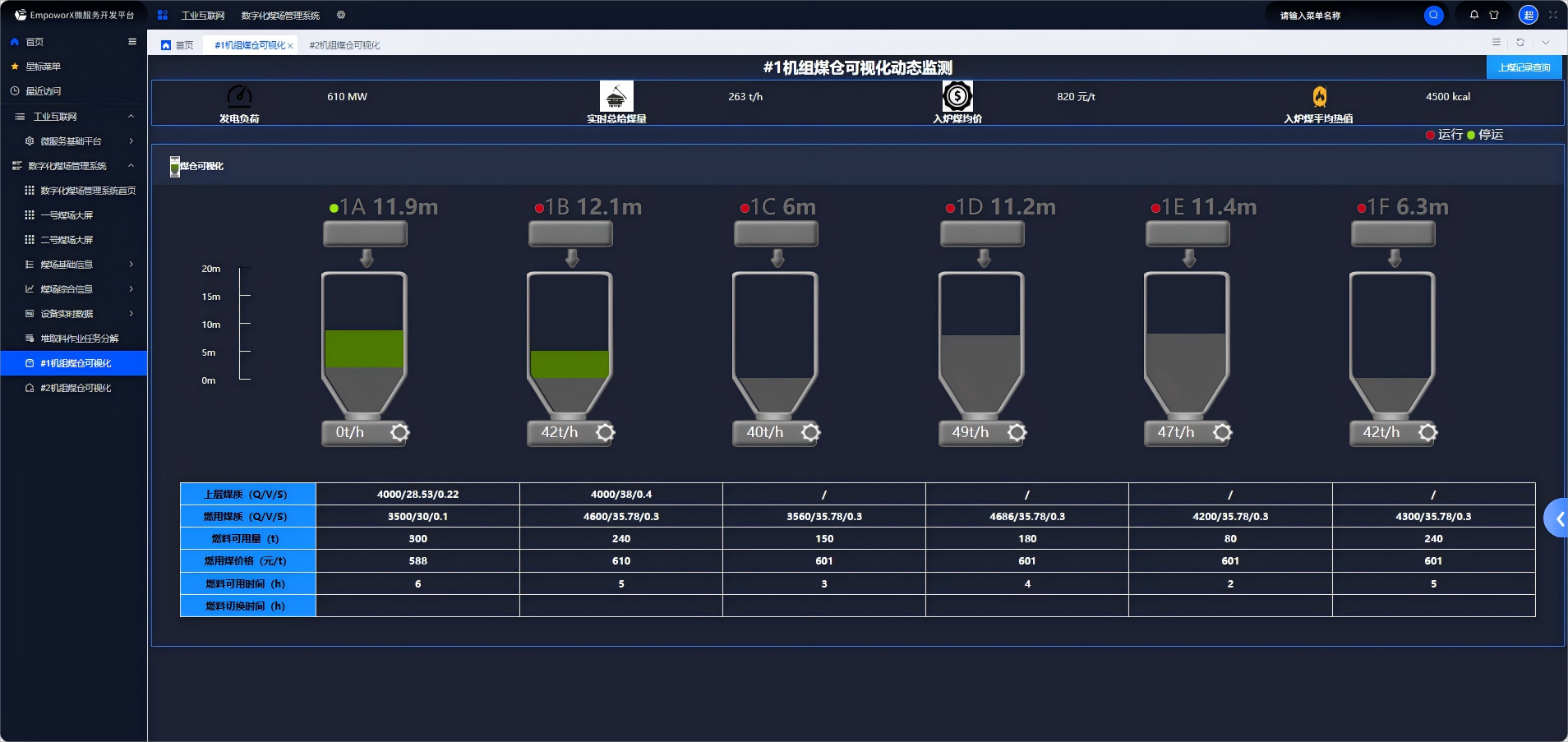 頁面與核心算法調試完成并上線,倉內料位實時監控、煤種分布狀態清晰呈現,為精準摻配提供了關鍵數據支撐。