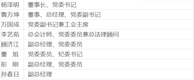 董事長、黨委書記吳普松;董事、總經理、黨委副書記杜鐵良;