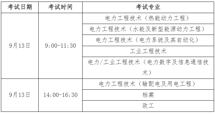 “專業與能力考試”共包括八套試卷,涉及電力工程技術(熱能動力工程)、電力工程技術(水能及新型能源動力工程)、電力工程技術(輸配電及用電工程)、電力工程技術(電力系統及其自動化)、工業工程技術、電力/工業工程技術(電力數字及信息通信技術)、檔案和政工8個專業。