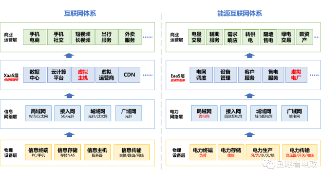 左半邊是IT互聯(lián)網生態(tài)體系,右半邊是能源互聯(lián)網電力生態(tài)體系。