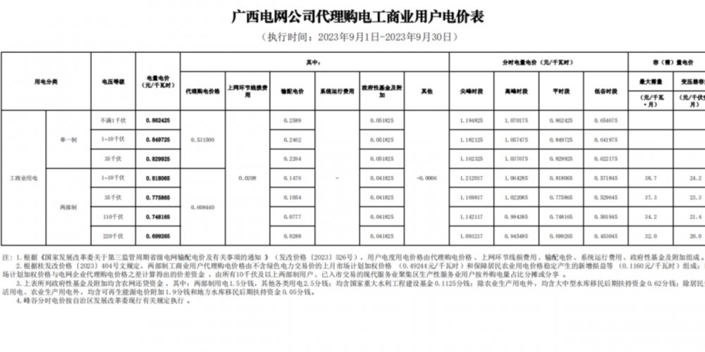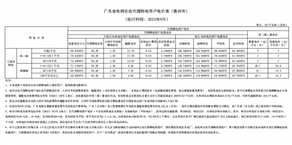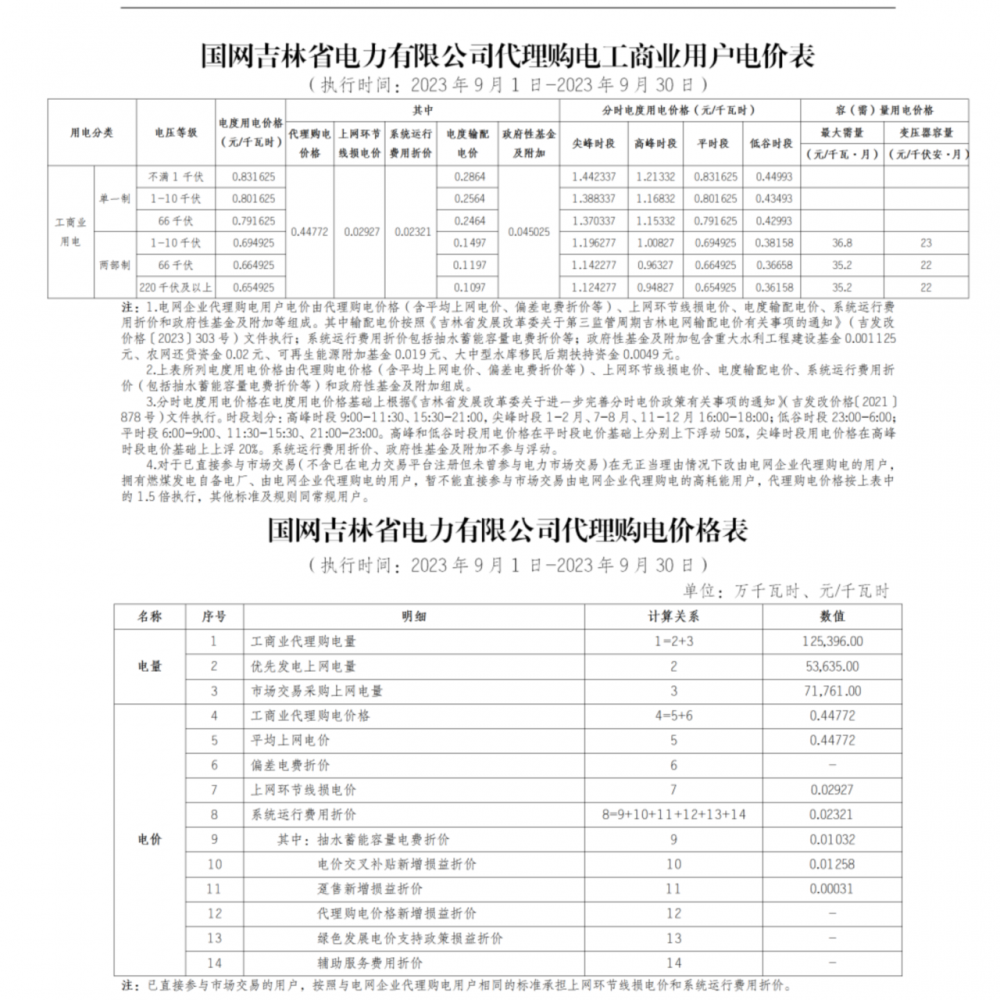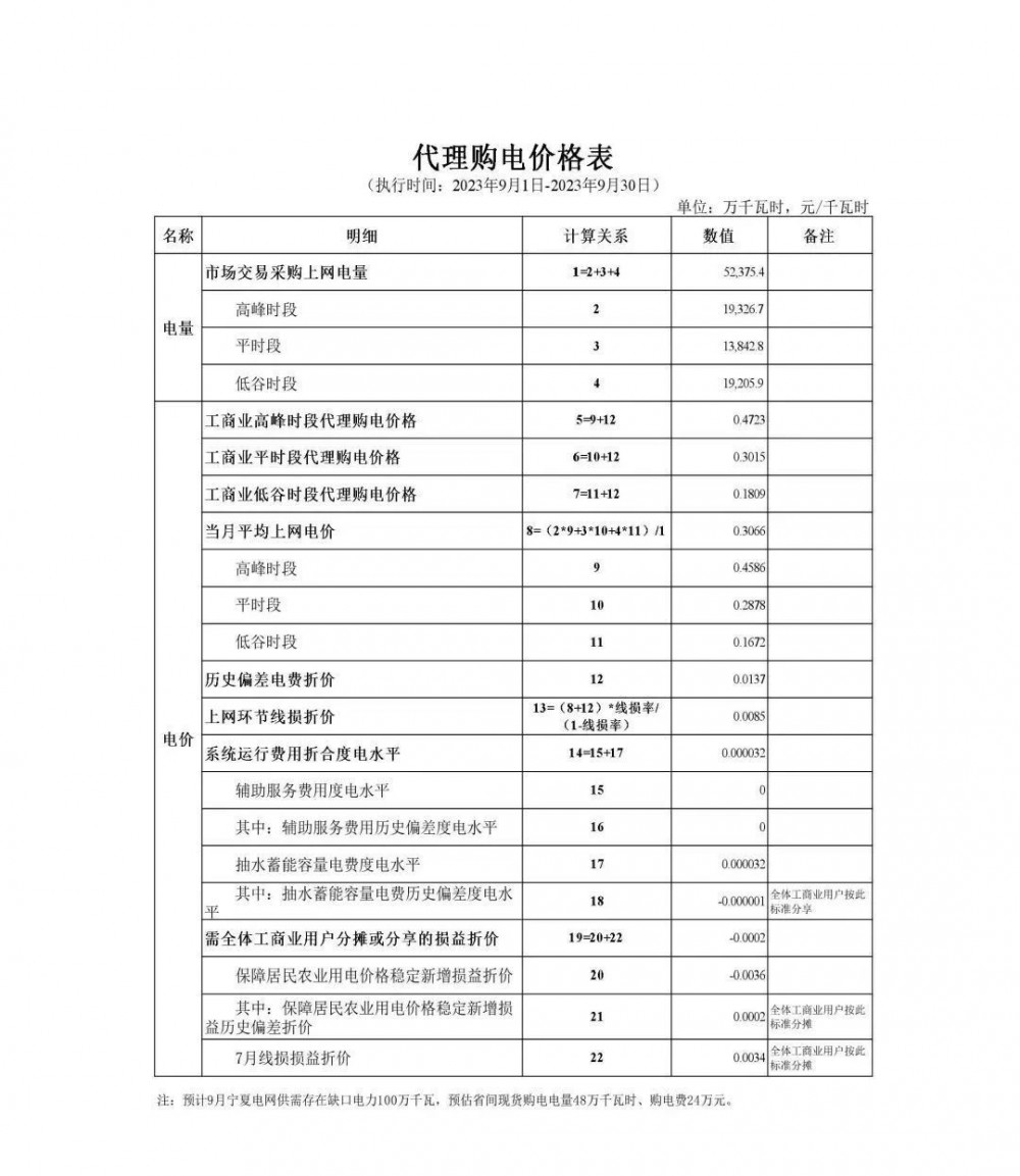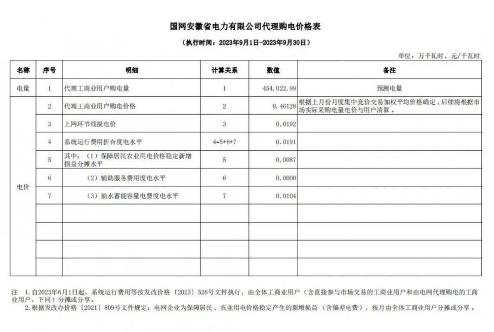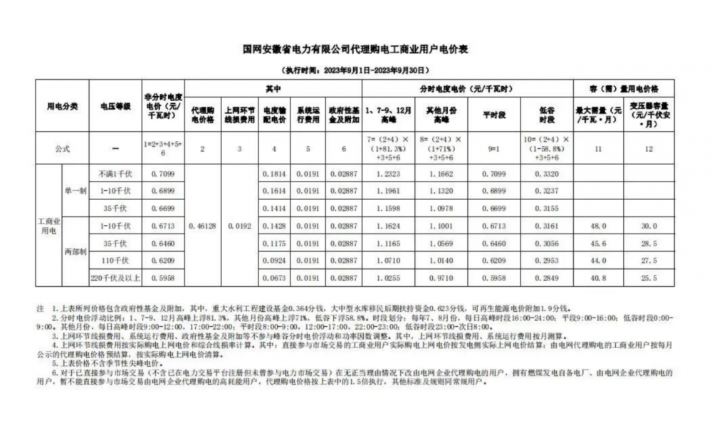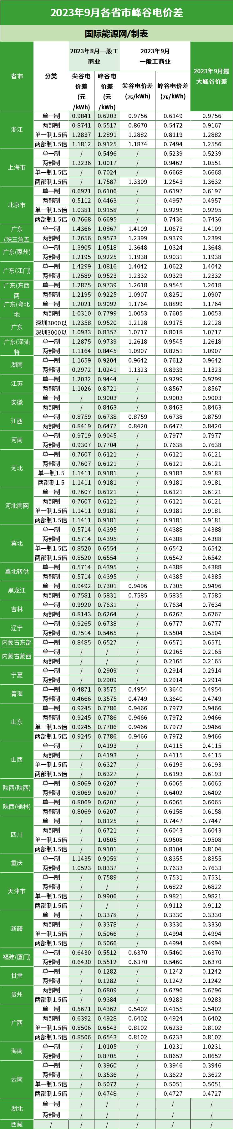 2023年9月各省最新電價(jià)(附表)