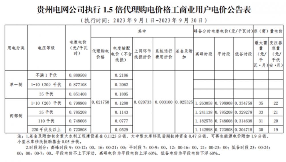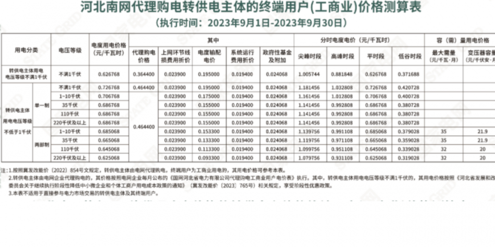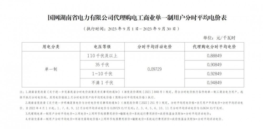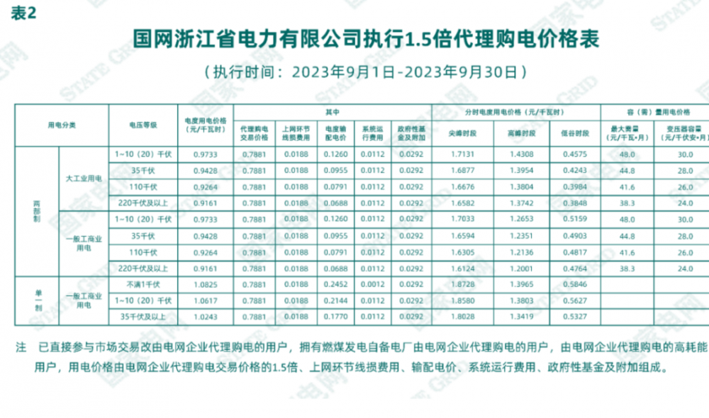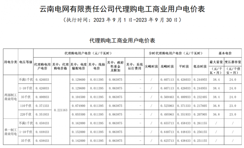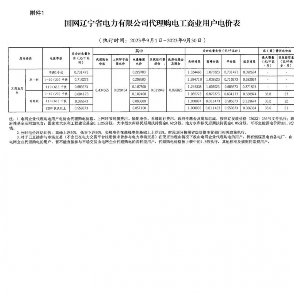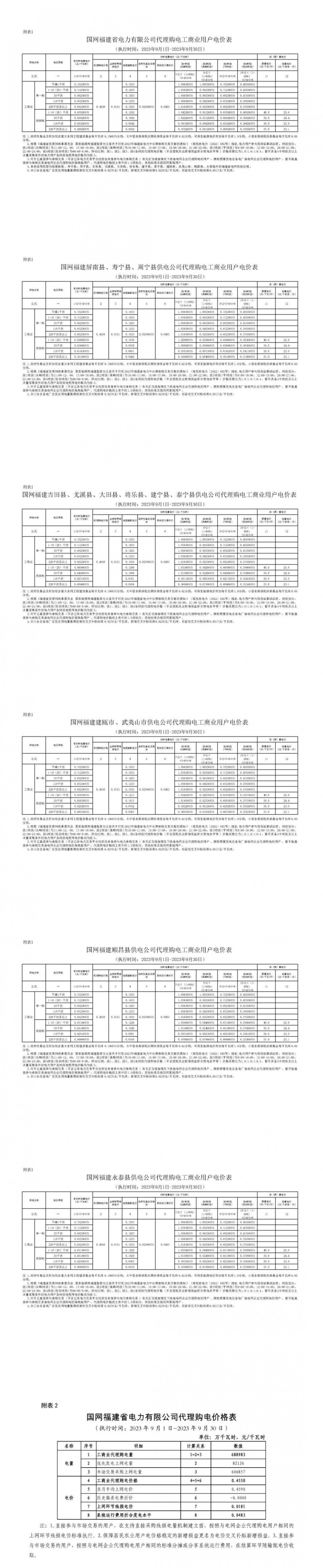 2023年9月各省最新電價(jià)(附表)