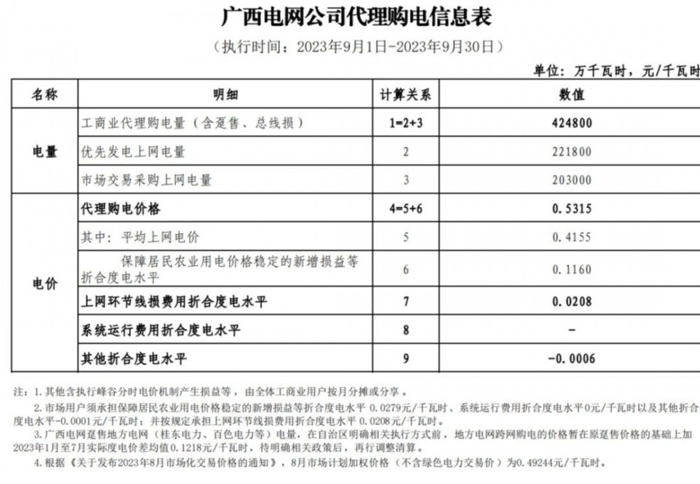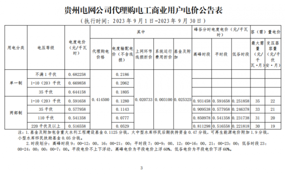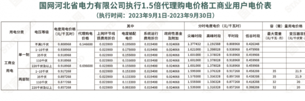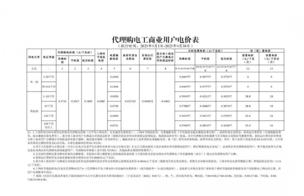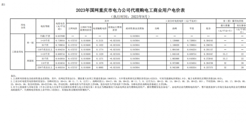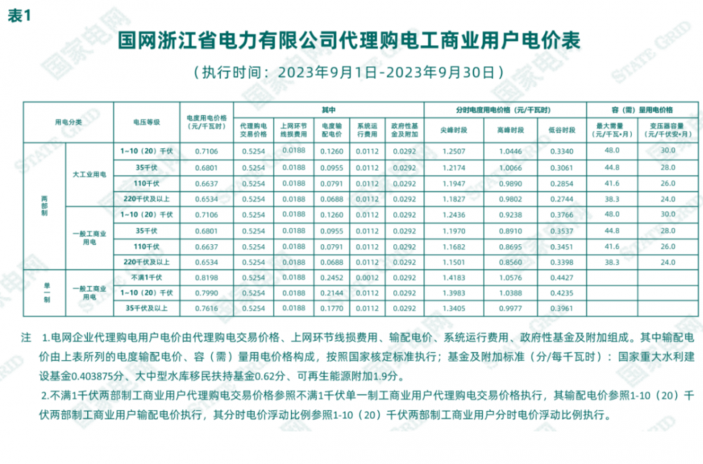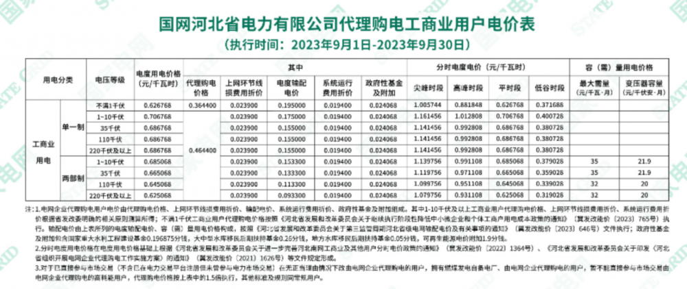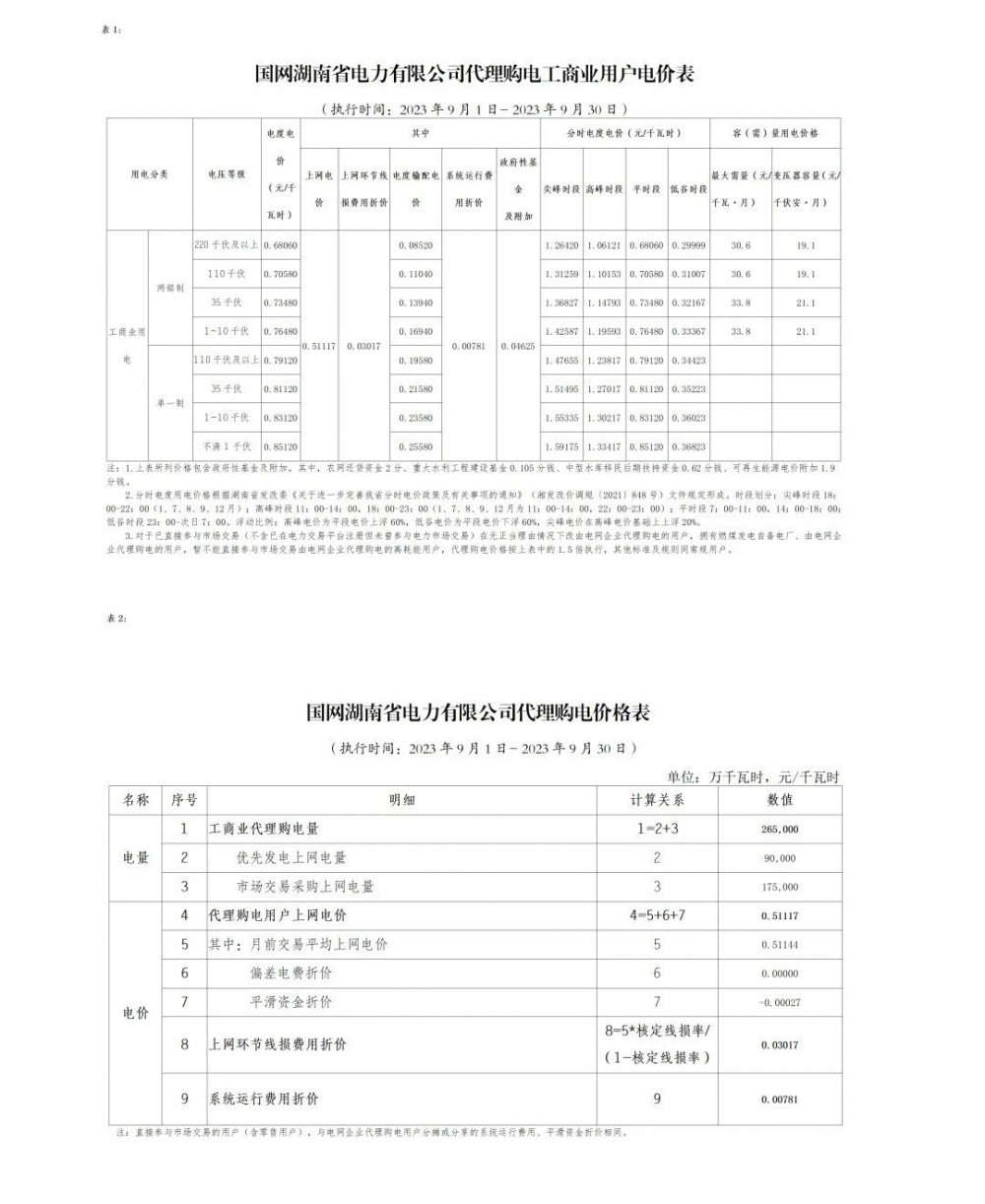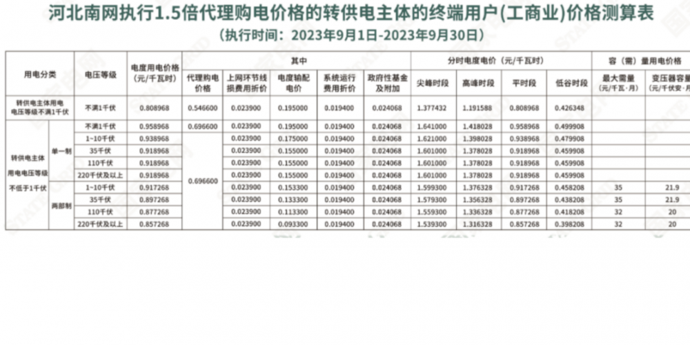 2023年9月各省最新電價(jià)(附表)