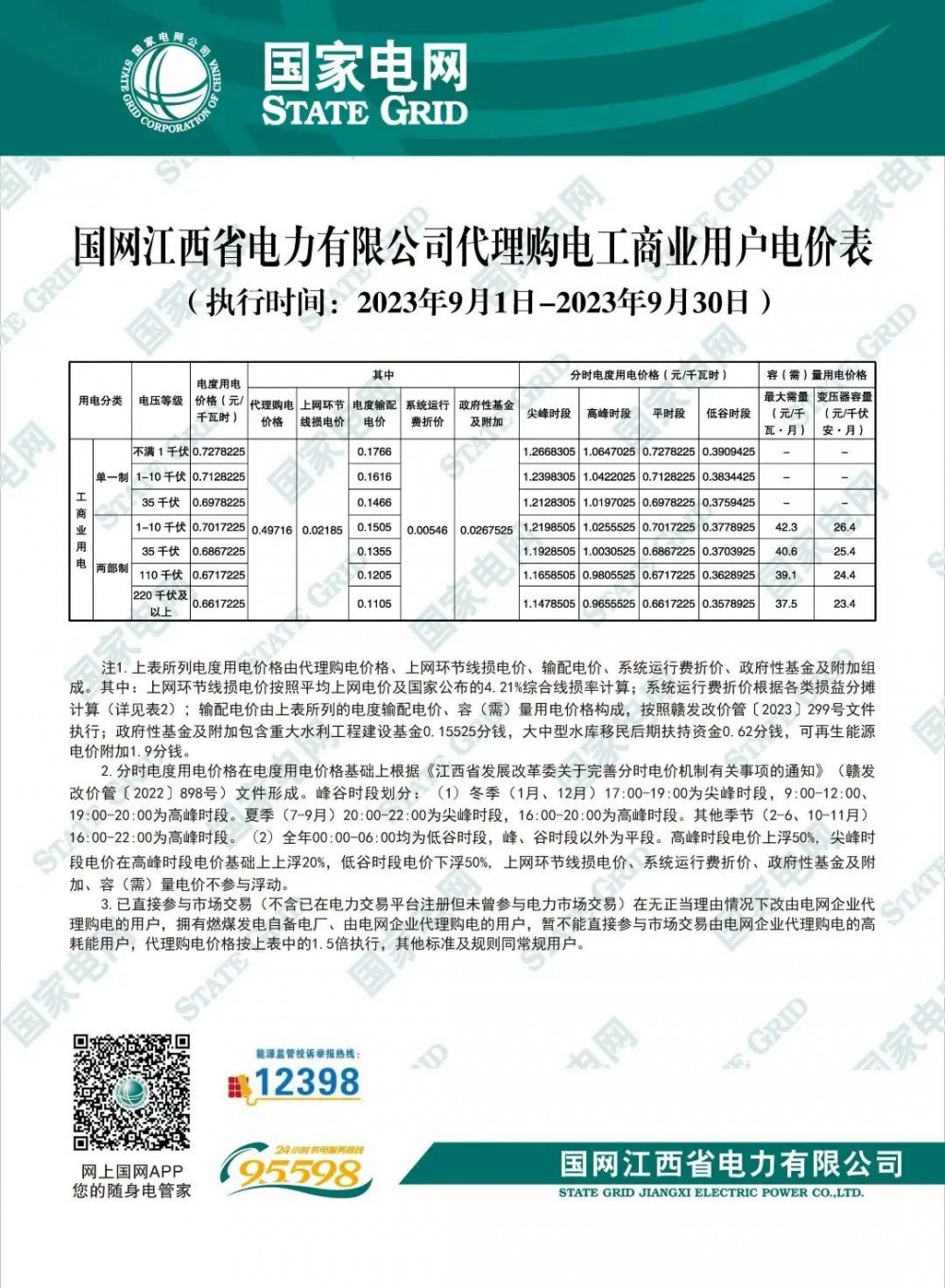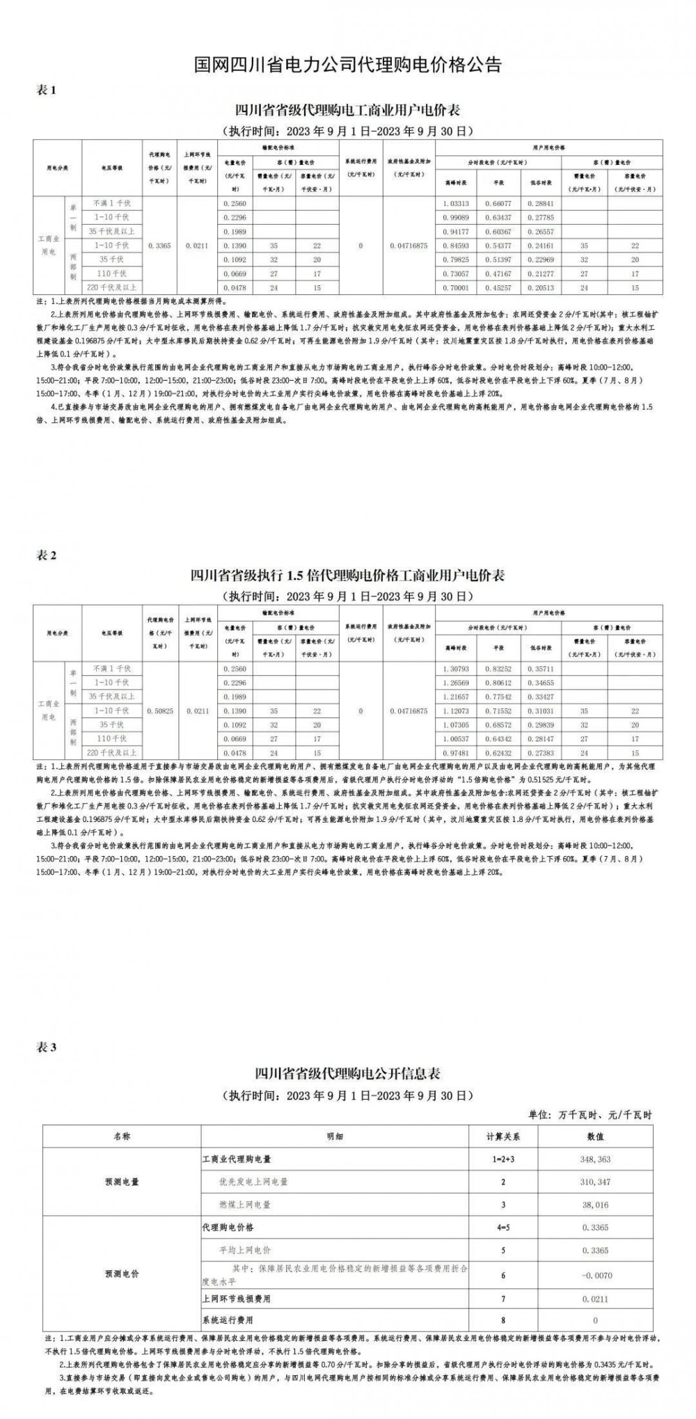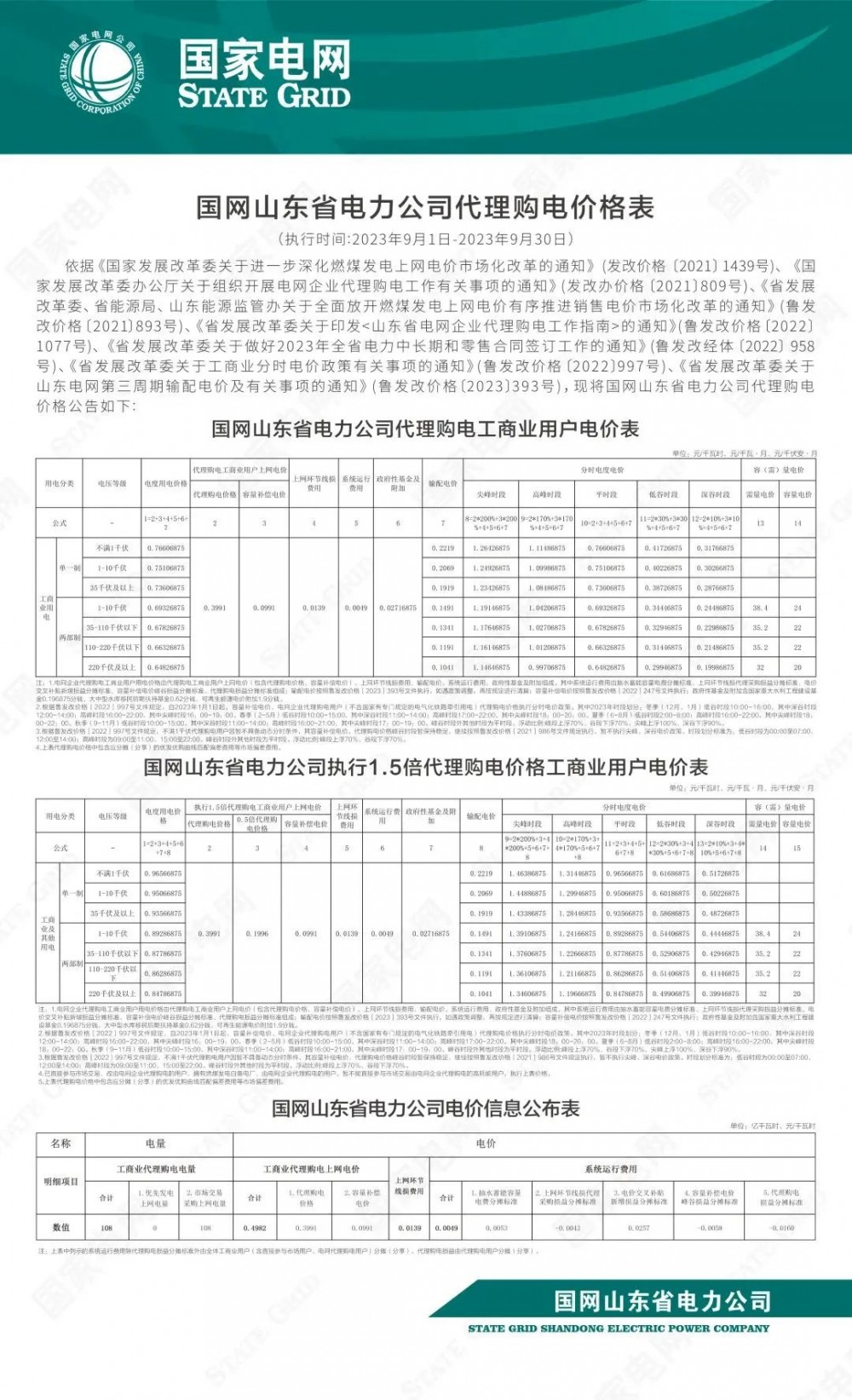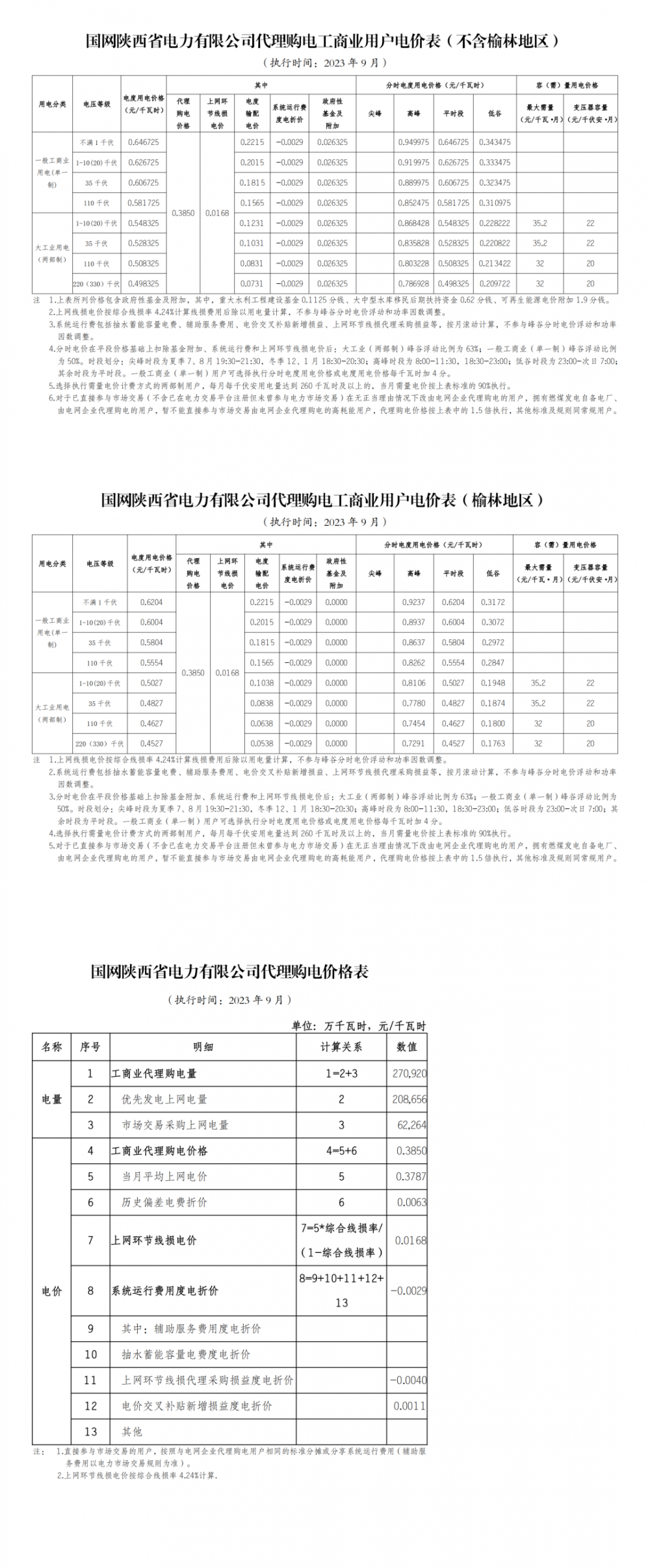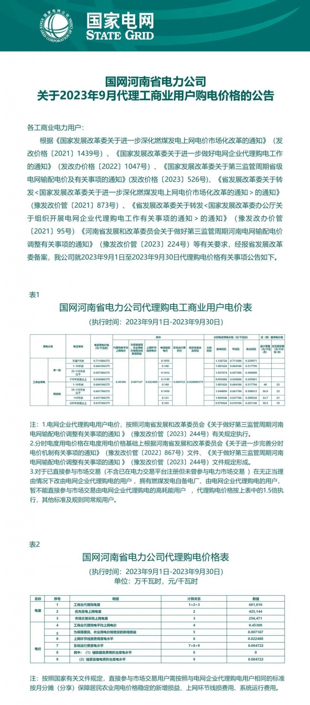 2023年9月各省最新電價(jià)(附表)
