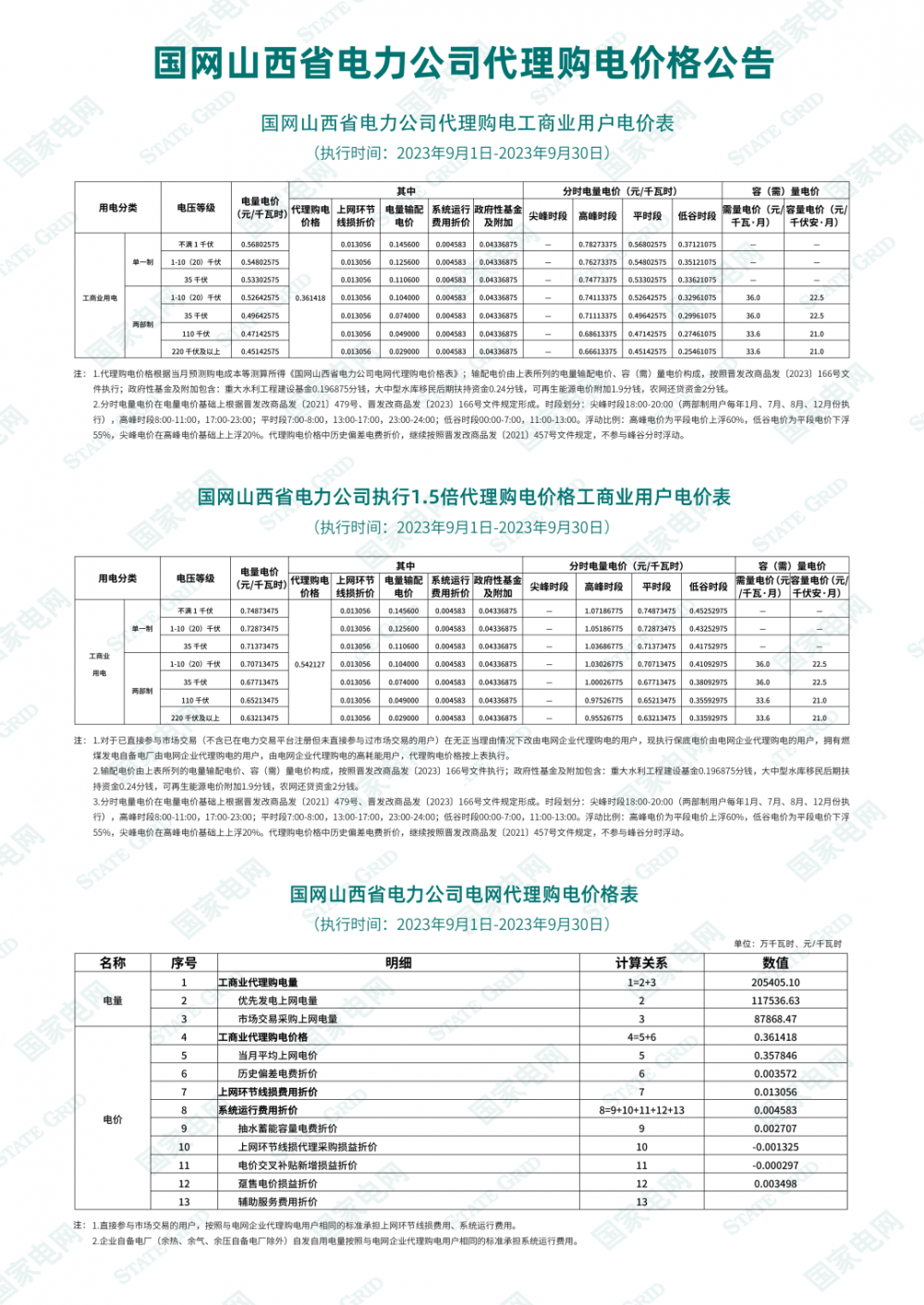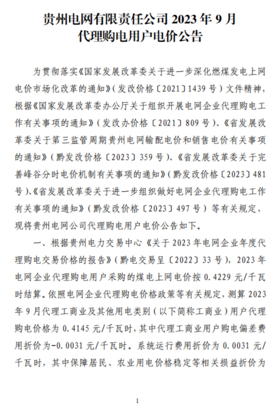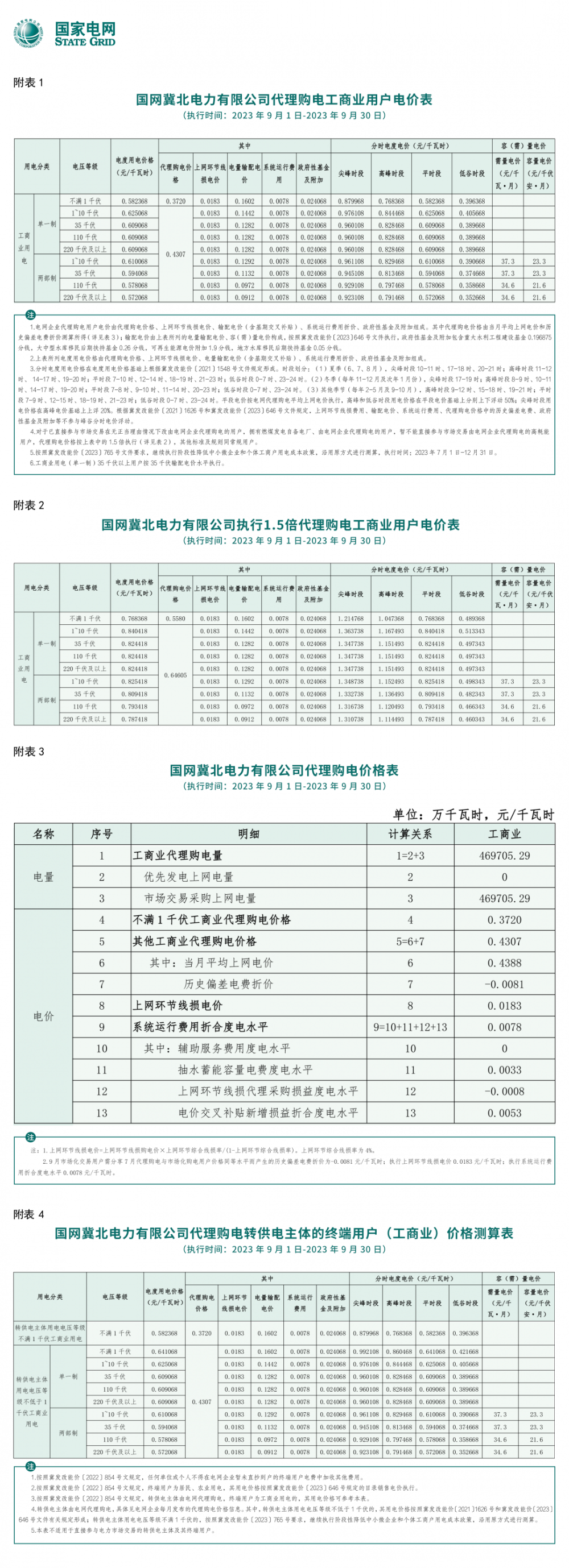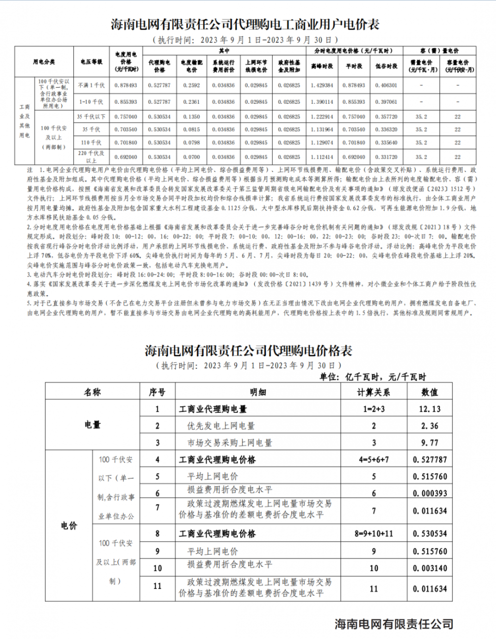 2023年9月各省最新電價(jià)(附表)