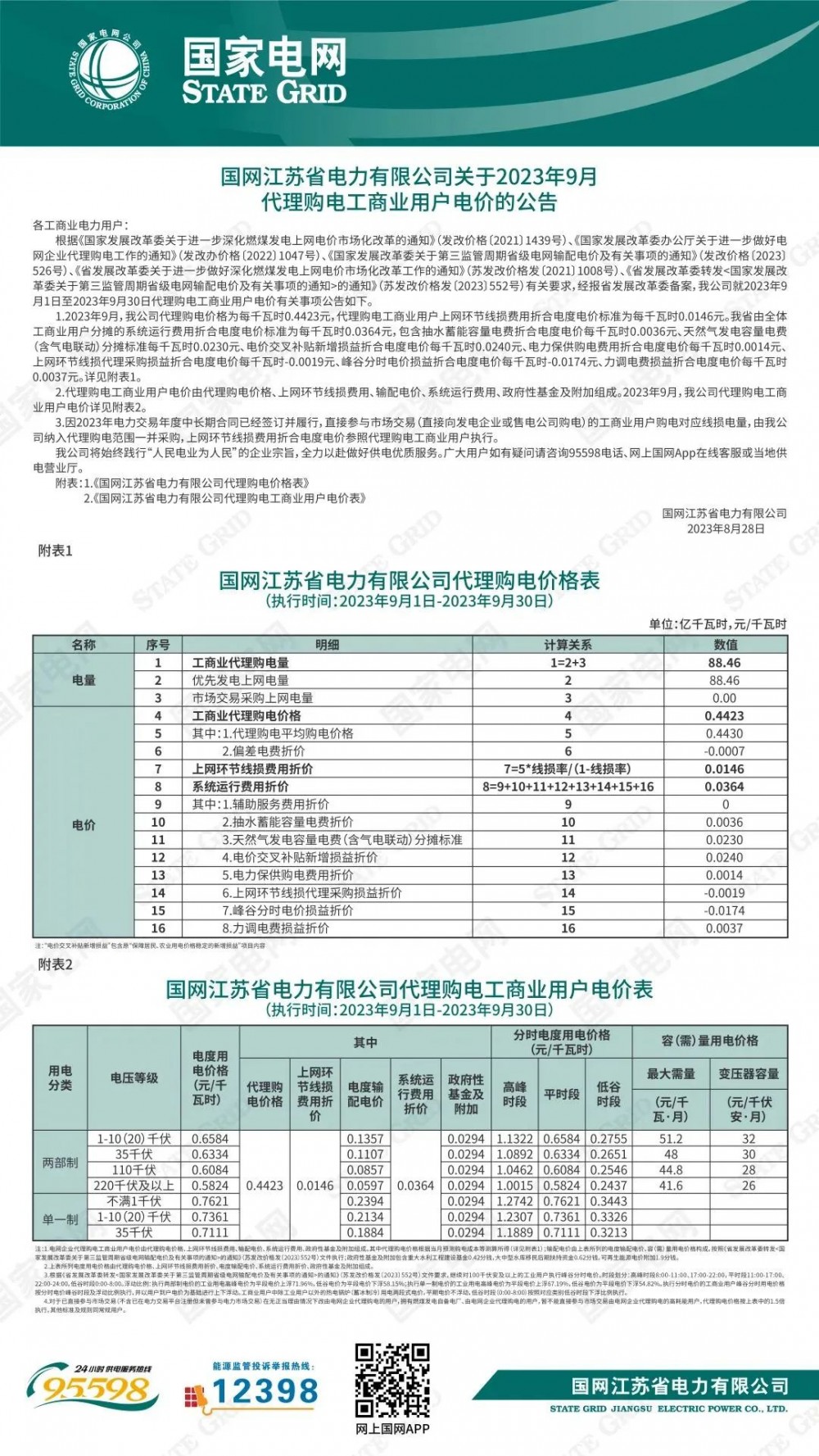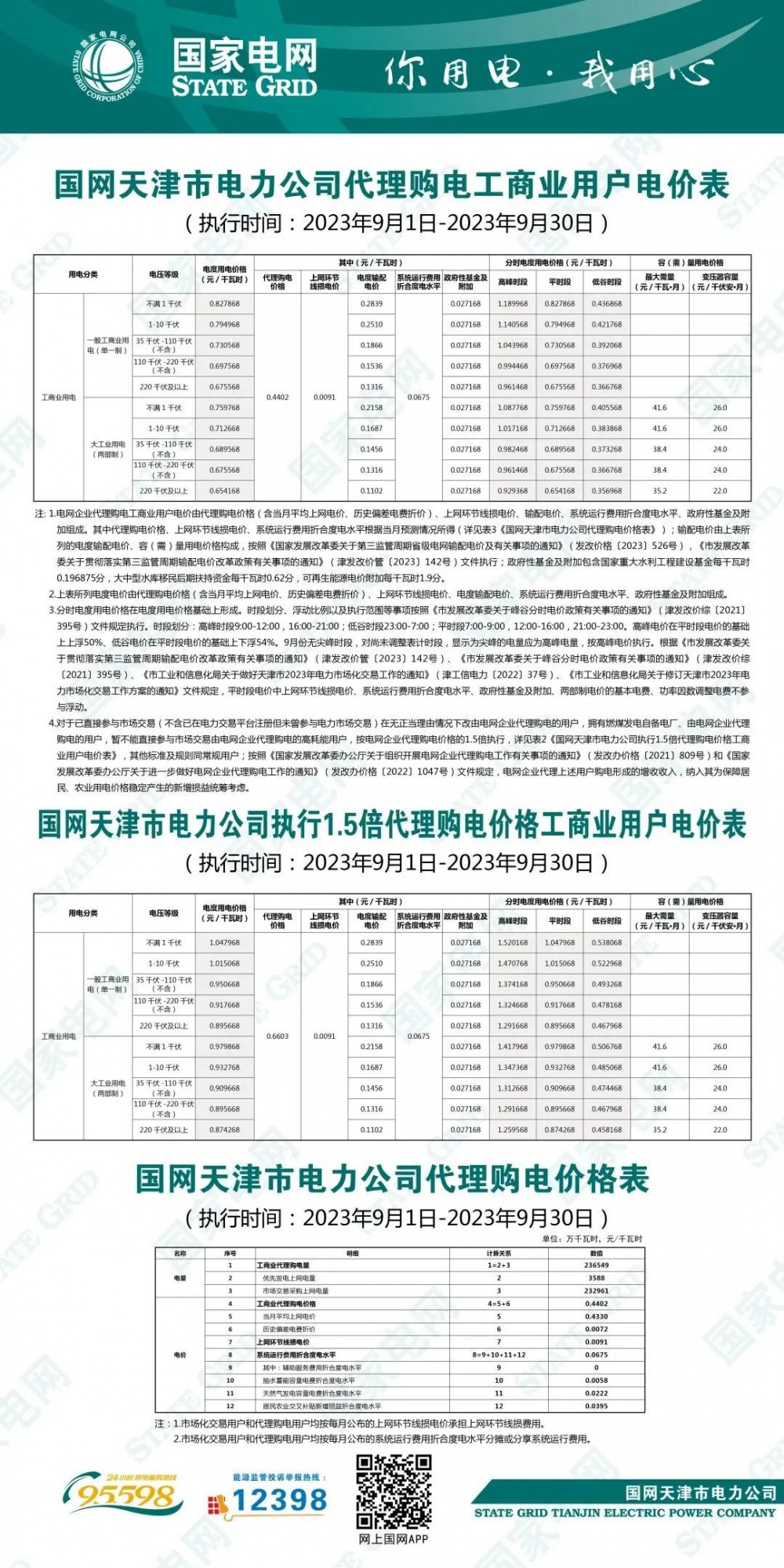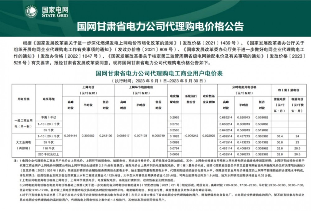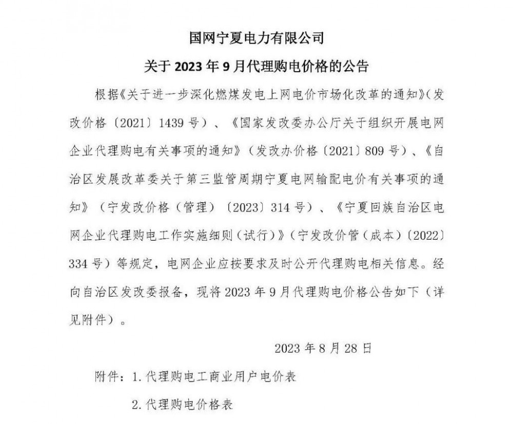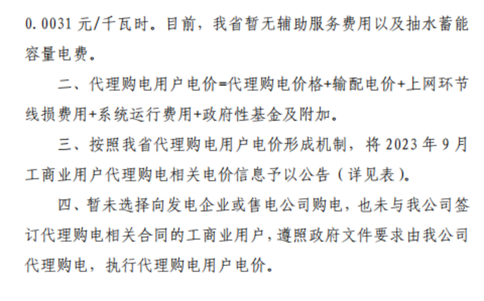 以下為2023年9月各地電網(wǎng)企業(yè)代理購(gòu)電價(jià)文件信息。先后順序?yàn)椋罕本⑻旖颉⑸虾!⒅貞c、河北、冀北、黑龍江、吉林、遼寧、蒙東、內(nèi)蒙古、甘肅、寧夏、青海、貴州、云南、新疆、山西、山東、陜西、安徽、河南、江蘇、浙江、湖北、湖南、四川、江西、廣東、深圳、廣西、福建、海南。