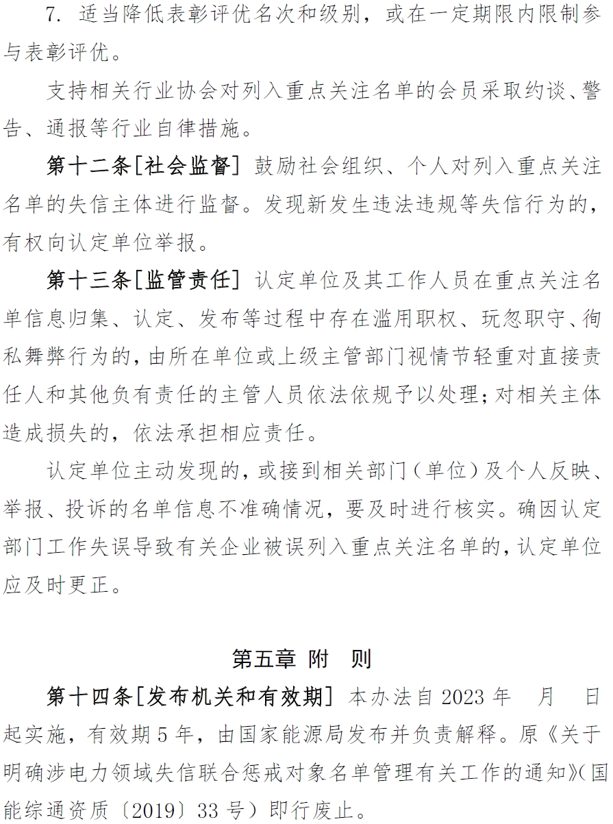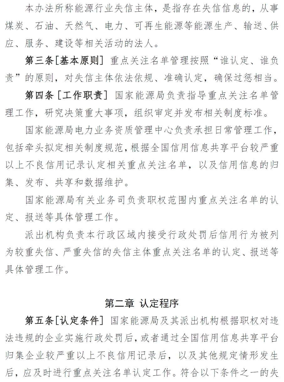 附件:能源行業失信主體重點關注名單管理辦法(征求意見稿)