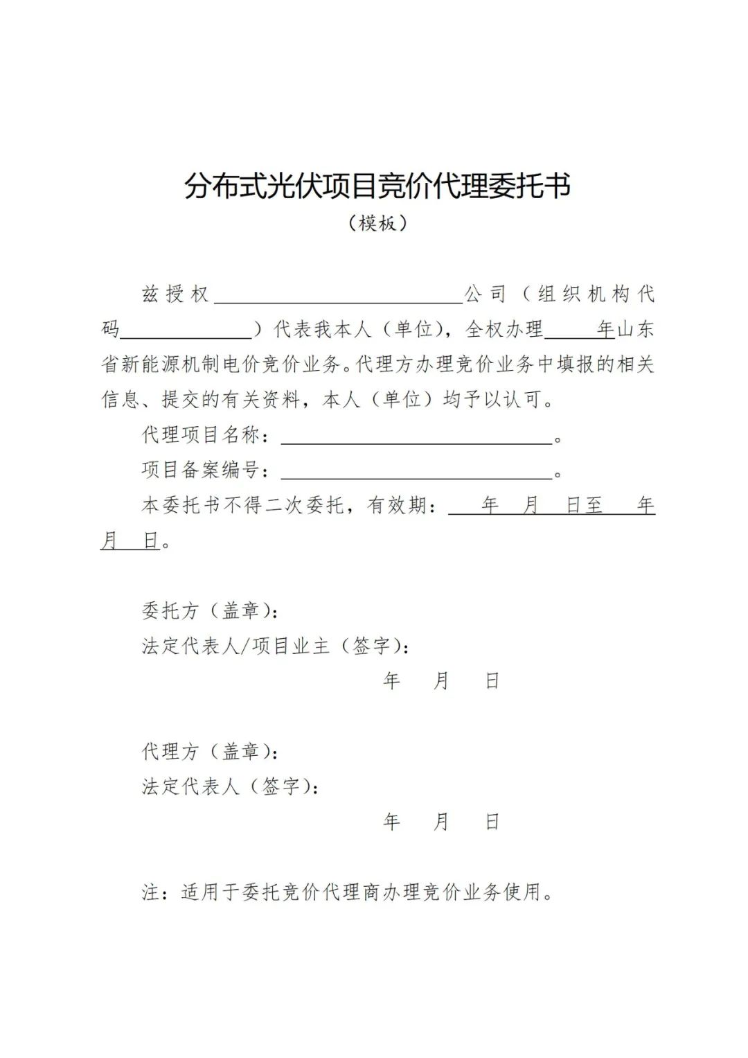 (2)非自然人戶用光伏。應提供項目備案文件、法定代表人法定身份證明、營業(yè)執(zhí)照、國網(wǎng)山東省電力公司出具同意接入的《分布式光伏發(fā)電項目接入系統(tǒng)設計方案報告研究答復單》或《分布式光伏接入系統(tǒng)方案項目業(yè)主確認單》、發(fā)電地址權(quán)屬證明(房產(chǎn)證、土地證、宅基地證、或者鄉(xiāng)鎮(zhèn)及以上政府出具的房屋產(chǎn)權(quán)證明)、合同能源管理協(xié)議或發(fā)電地址租賃協(xié)議(利用非自有場所建設)和《競價信息填報承諾書》,如非企業(yè)法定代表人辦理還需提供《競價授權(quán)委托書》、受托人法定身份證明。
