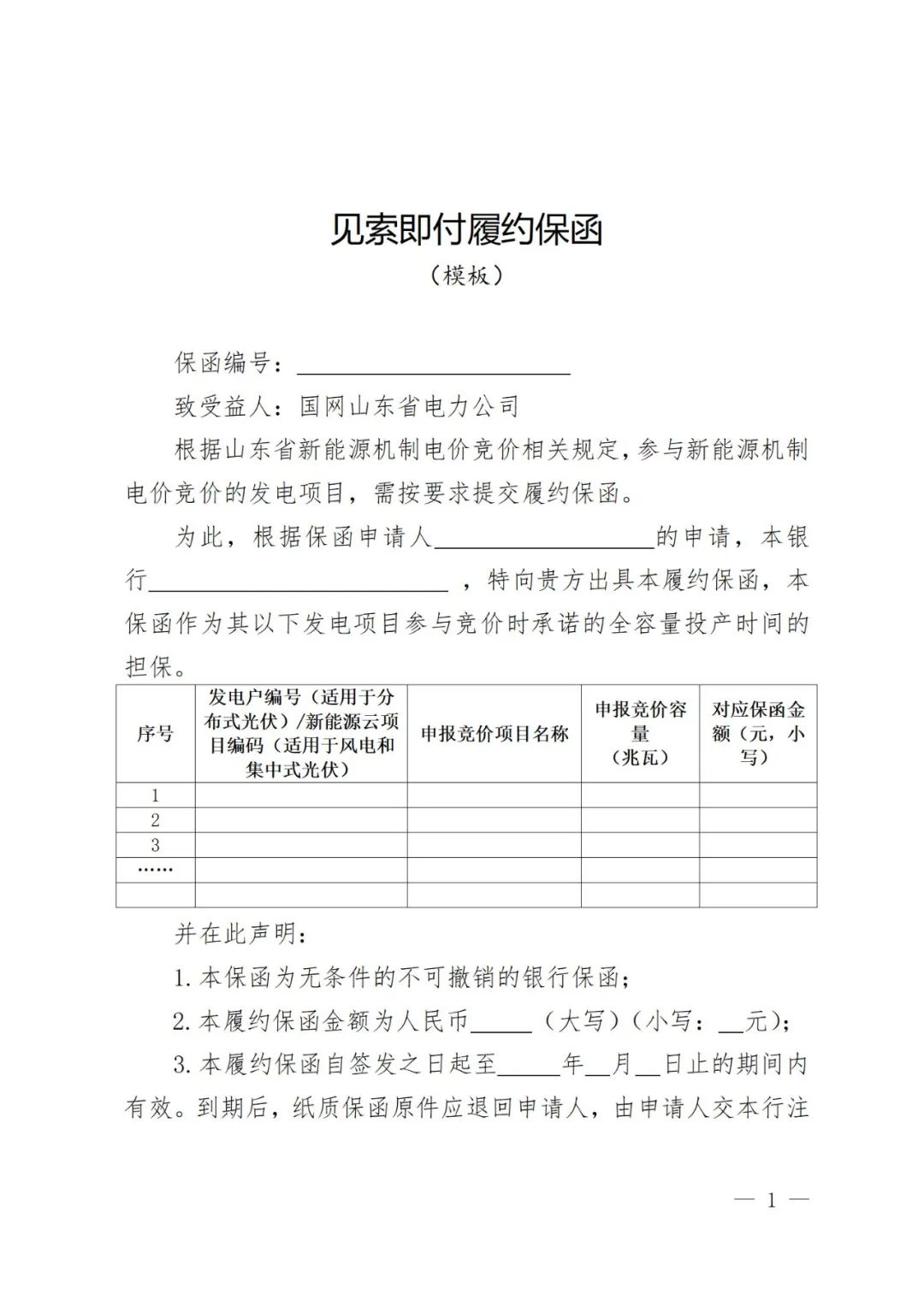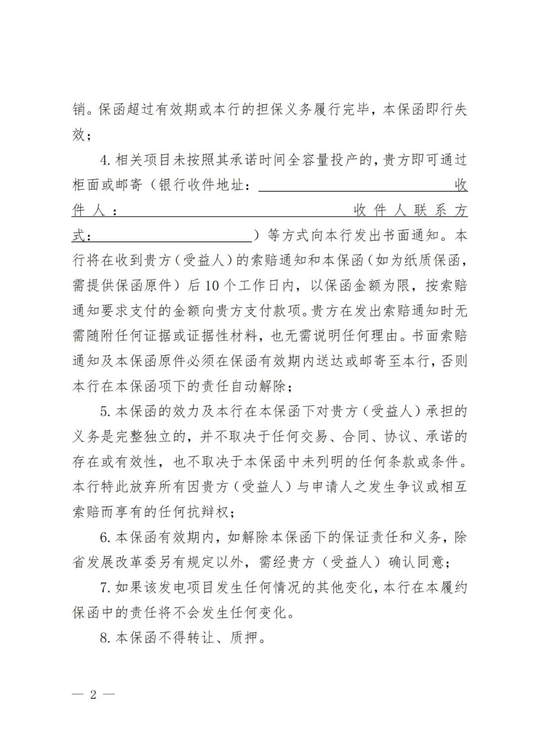 擬參與競價的未投產(chǎn)項目,需提交在國內(nèi)銀行營業(yè)網(wǎng)點開具的履約保函。履約保函應嚴格按照模板開具(模板詳見附表)。