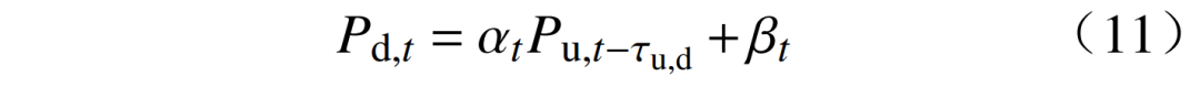 式中:P,t、P,t分別為上下游電站的出力;αt、βt分別為上下游水電站電力耦合一次系數和常數項;τ,為上下游電站的水流時滯。