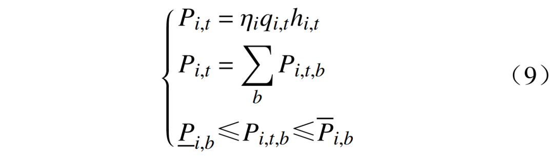 7)水電機組出力特性約束為