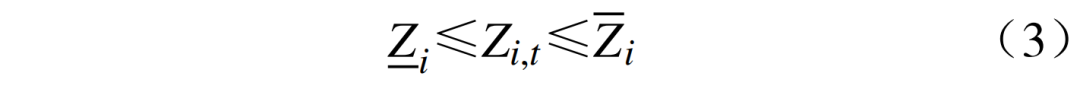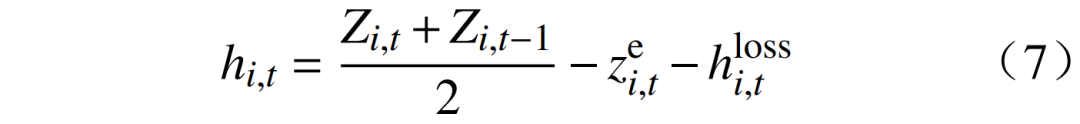 式中:分別為水電機組i在時段t的水位及其上下限。
