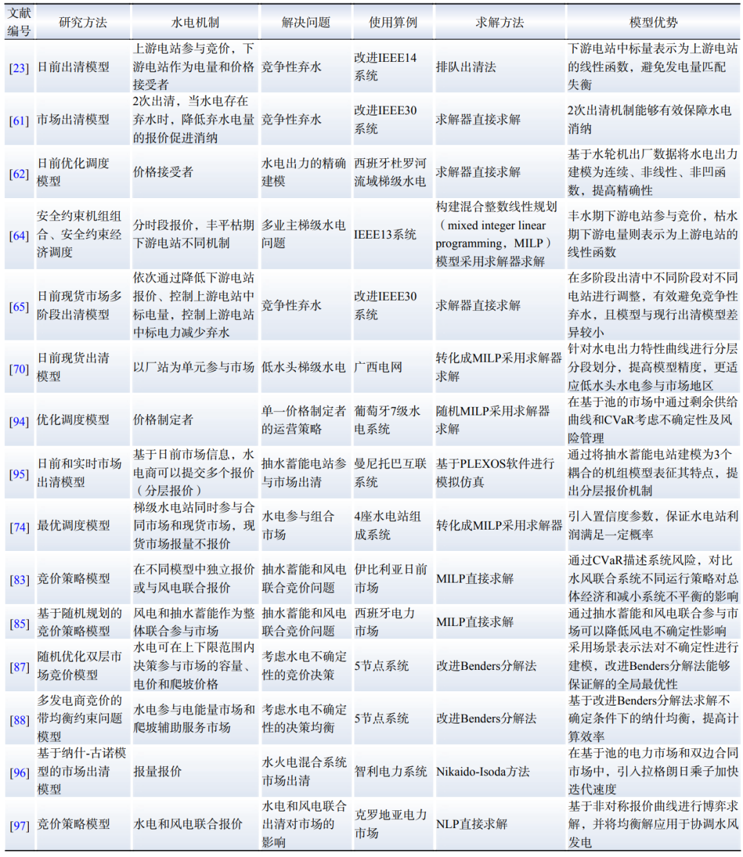 Table 7 Comparison of researches on hydropower participating in market