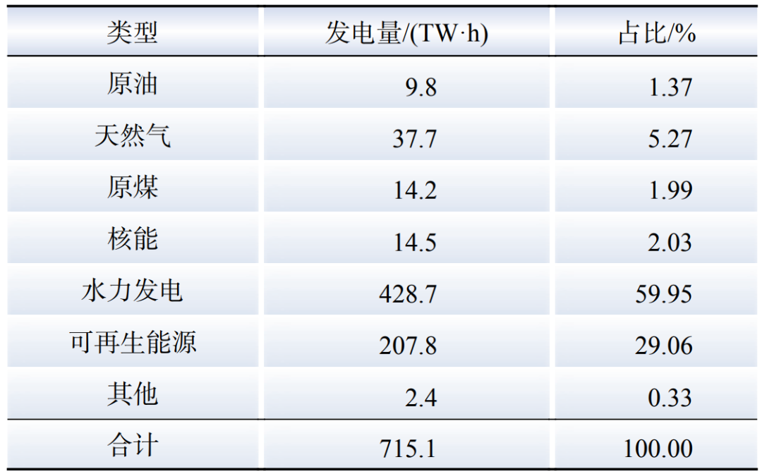 表2 2023年加拿大各類電源發電情況
