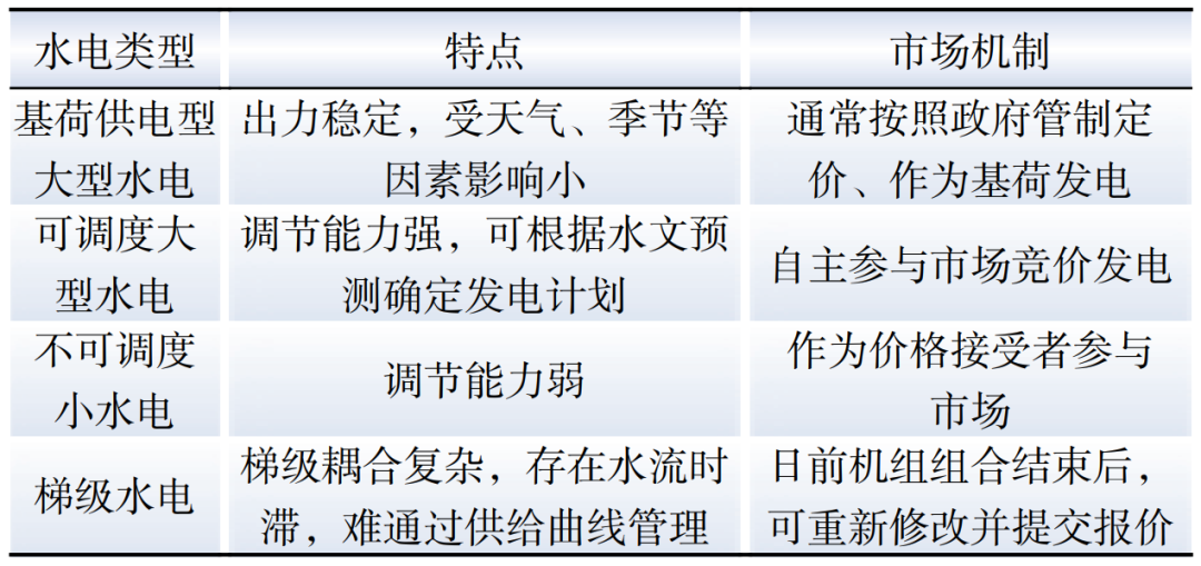 Table 5 Market mechanisms with hydropower participation in different countries / regions