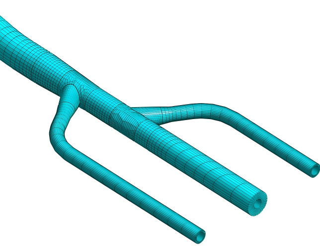 首次采用數學模型和物理模型試驗相結合的方法,根據高壓岔管水力學數值模型試驗,優化岔管體型,再結合物理模型對岔管體型進行驗證?;陉栃铍娬靖邏翰砉茉O計體型,研究了岔管體型參數對岔管水力學特性的影響,包括平底岔管體型、同側岔管體型、主管等徑體型與中心對稱岔管體型水力特性的對比分析;不同分岔角、不同主支管徑比、不同錐角對岔管水力特性的影響規律。最終采用中心對稱岔管體型,分岔角60°,錐角60°。