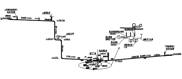陽江抽水蓄能電站上水庫與下平洞高差達730米,單級豎井高差達350米,充水試驗難度超出現有工程經驗。采用常規引水道充水方案,存在水體因落差大、自重加速度帶來的高流速水流對下平洞混凝土襯砌結構破壞的問題。為解決上述難題,引水道充水首先利用尾水進行反向充水。反向充水的臨時管路是從2#機側公共消防取水管濾水器前DN350蝶閥處,接至2#機進水閥前DN200壓力鋼管排水管球閥后,先充下平洞,充至下豎井20m高程位置,先形成15米厚水墊,再利用上庫進出水口閘門上的充水閥進行整個引水系統的充水,解決了超高水頭引水道充水方案設計難點。2021年11月陽蓄輸水系統充水試驗順利進行并一次成功,也驗證了充水方案的合理性。