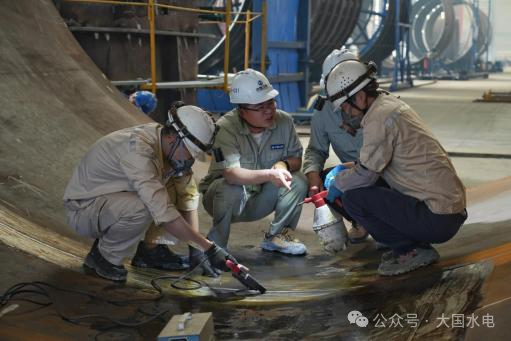 ▲天臺抽蓄工程師檢查壓力鋼管焊材