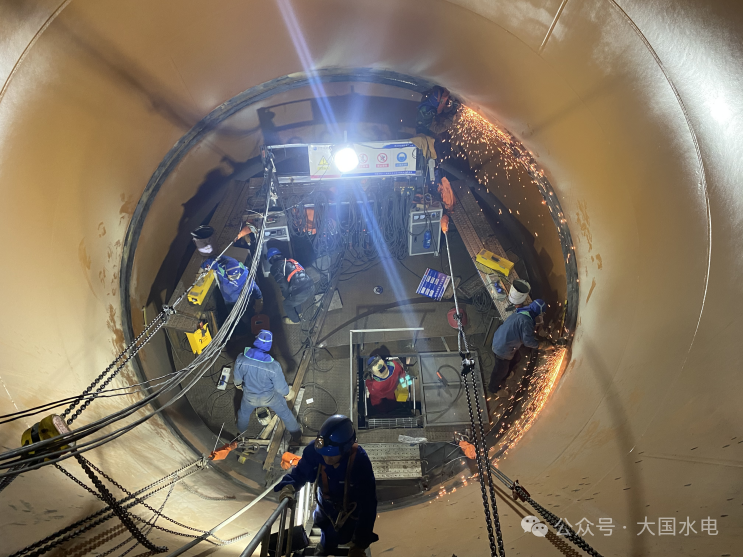 ▲白鶴灘水電站右岸主廠房16號機窩蝸殼焊接施工形象