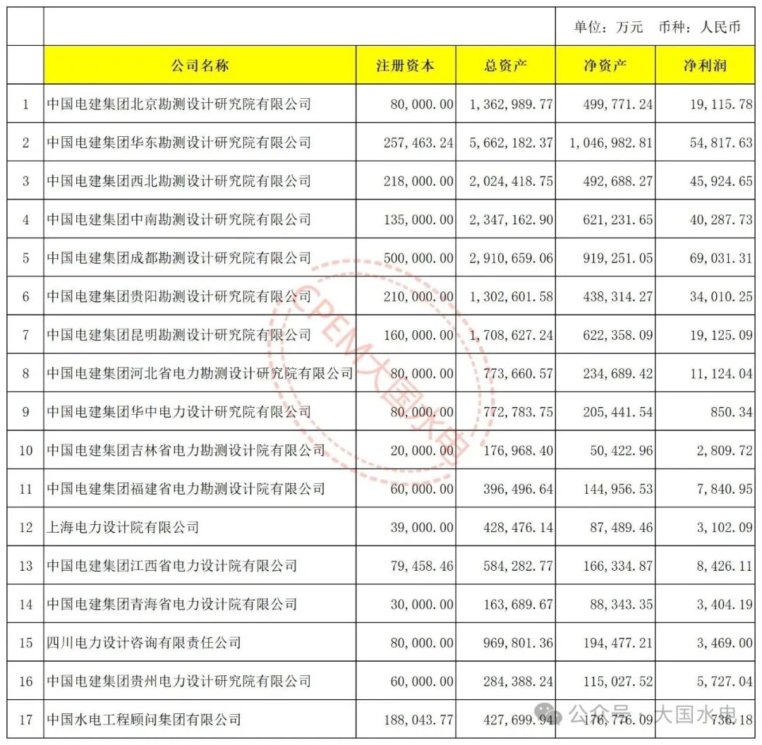 中國電建旗下17家勘測設計院