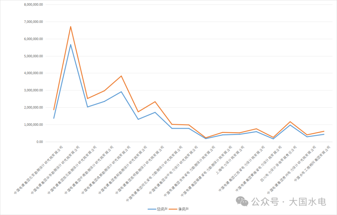 中國電建旗下17家勘測設計院,各設計院的經營表現差異巨大。從凈利潤看成都院、華東院、西北院排列前位,從總資產看華東院遙遙領先。