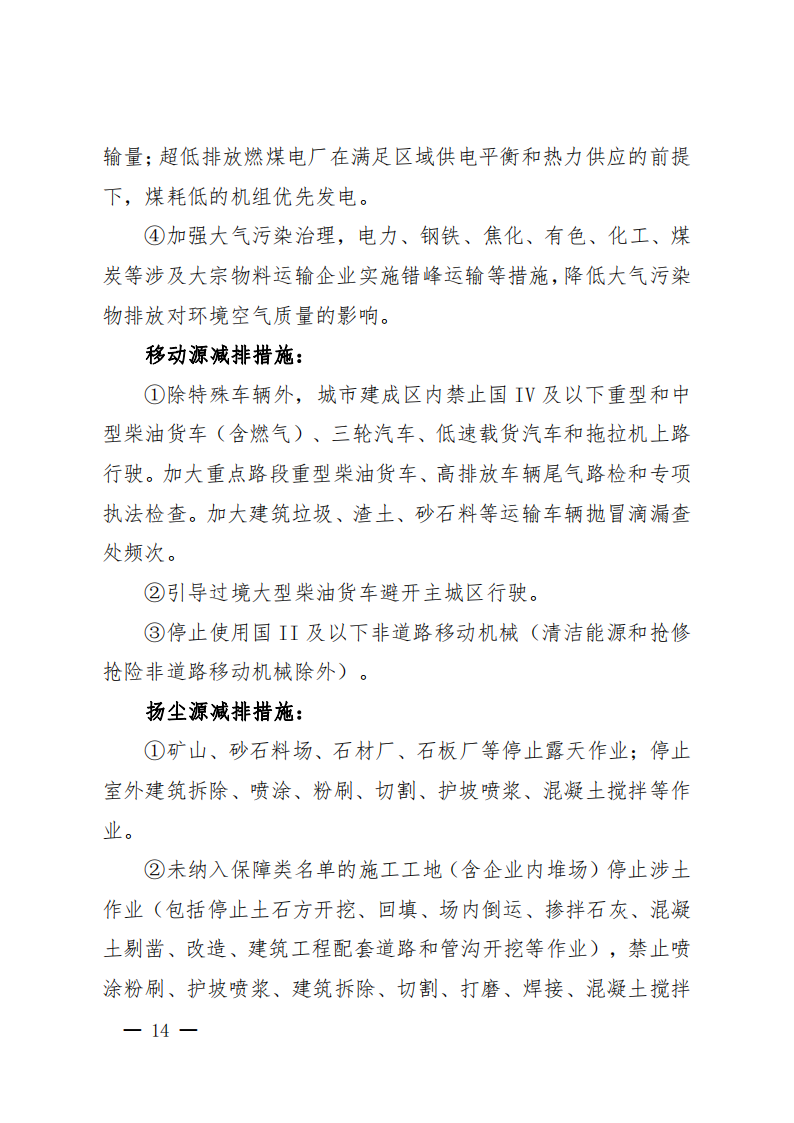 并且,電力、鋼鐵、焦化、有色、化工、煤炭等涉及大宗物料運輸企業實施錯峰運輸等措施,降低大氣污染物排放對環境空氣質量的影響。